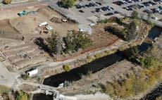 Tucker Gulch – This area will evolve from an underutilized water corridor and impervious surface area into an accessible riparian native landscape and amenity for the community. The area previously known as the Archer Street Lot will now connect the East Amenity Zone to the new Police and Municipal Building.