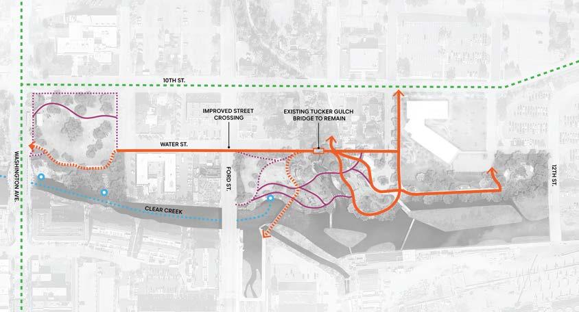 bike & walking lane water-side seating areas enhanced ecological health - walls removed TUCKER GULCH