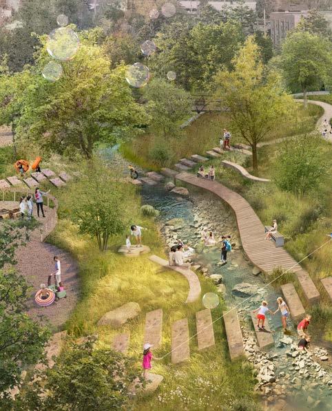 • Improving the community’s experience of the creek with new overlooks and restored, naturalized edges.