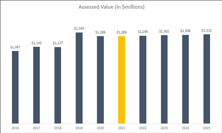 Over the past six years, focus has been placed on prioritizing services, managing expenditures, and developing and executing plans to address the ongoing structural imbalance that has negatively impacted the City’s financial position and service delivery for many years. This required the collaboration and support of the City Council, city leaders, bargaining units, and other stakeholders. The City has taken steps to address OPEB liabilities, compensated absences, restructuring debt, among many other initiatives to address legacy practices and modernize City operations. Continued stabilization of the City’s fiscal condition will require further efforts to critically examine and prioritize services, evaluate revenue options, as well as focus on attracting capital investment and other initiatives to grow the economy. However, the Assessed Value chart below demonstrates the challenges of relying on growth alone to address the City’s service needs.