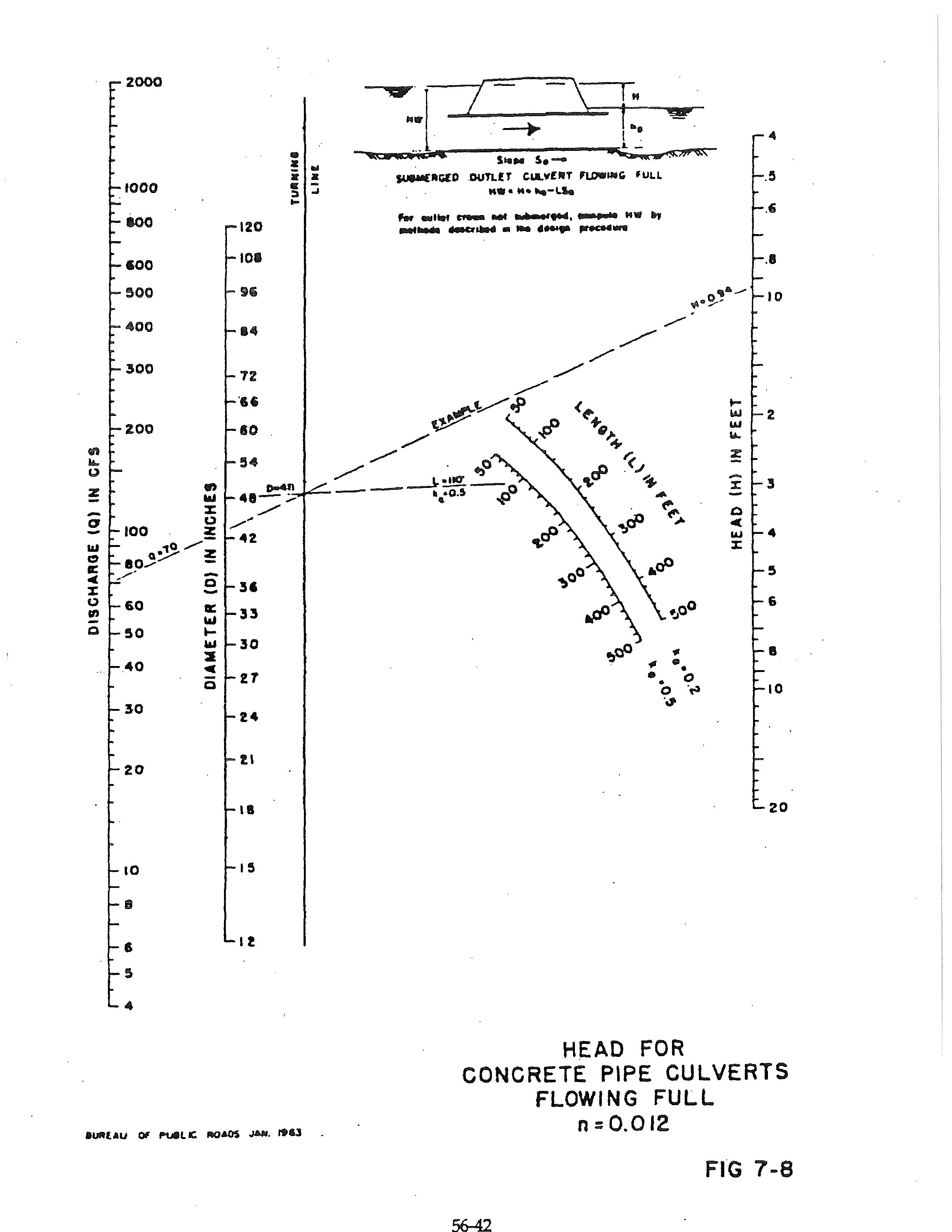 HEAD FOR OVAL CONCRETE PIPE CULVERTS LONG AXIS HORIZONTAL OR VERTICAL FLOWING FULL na0.012