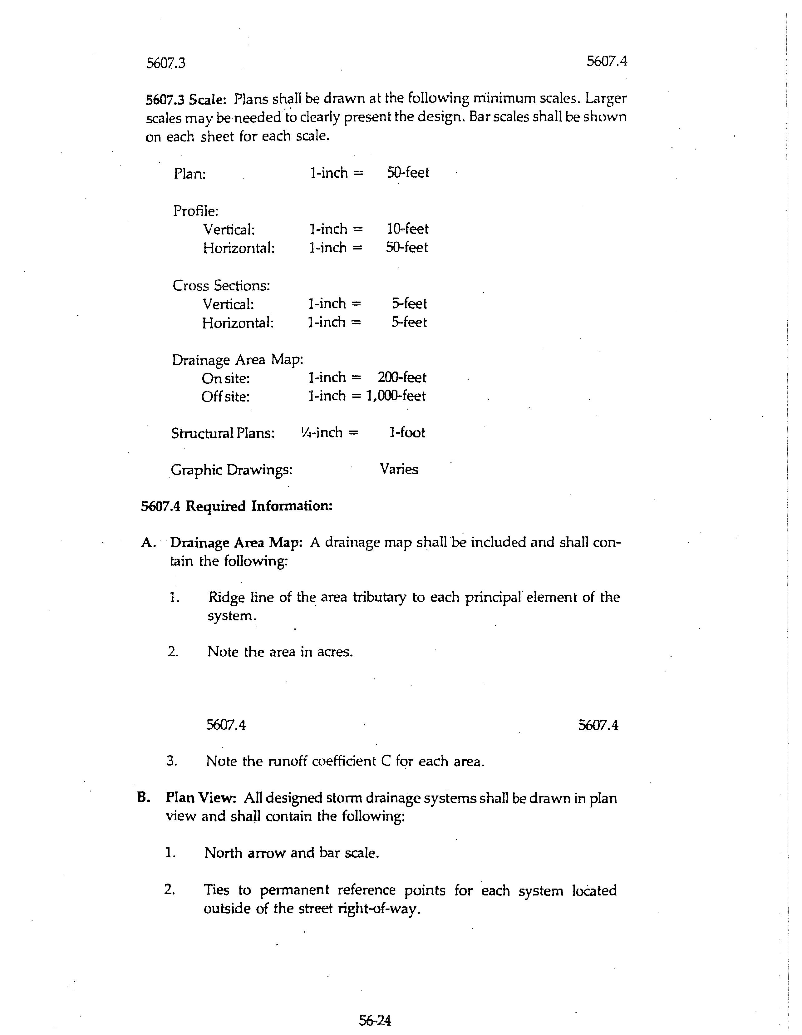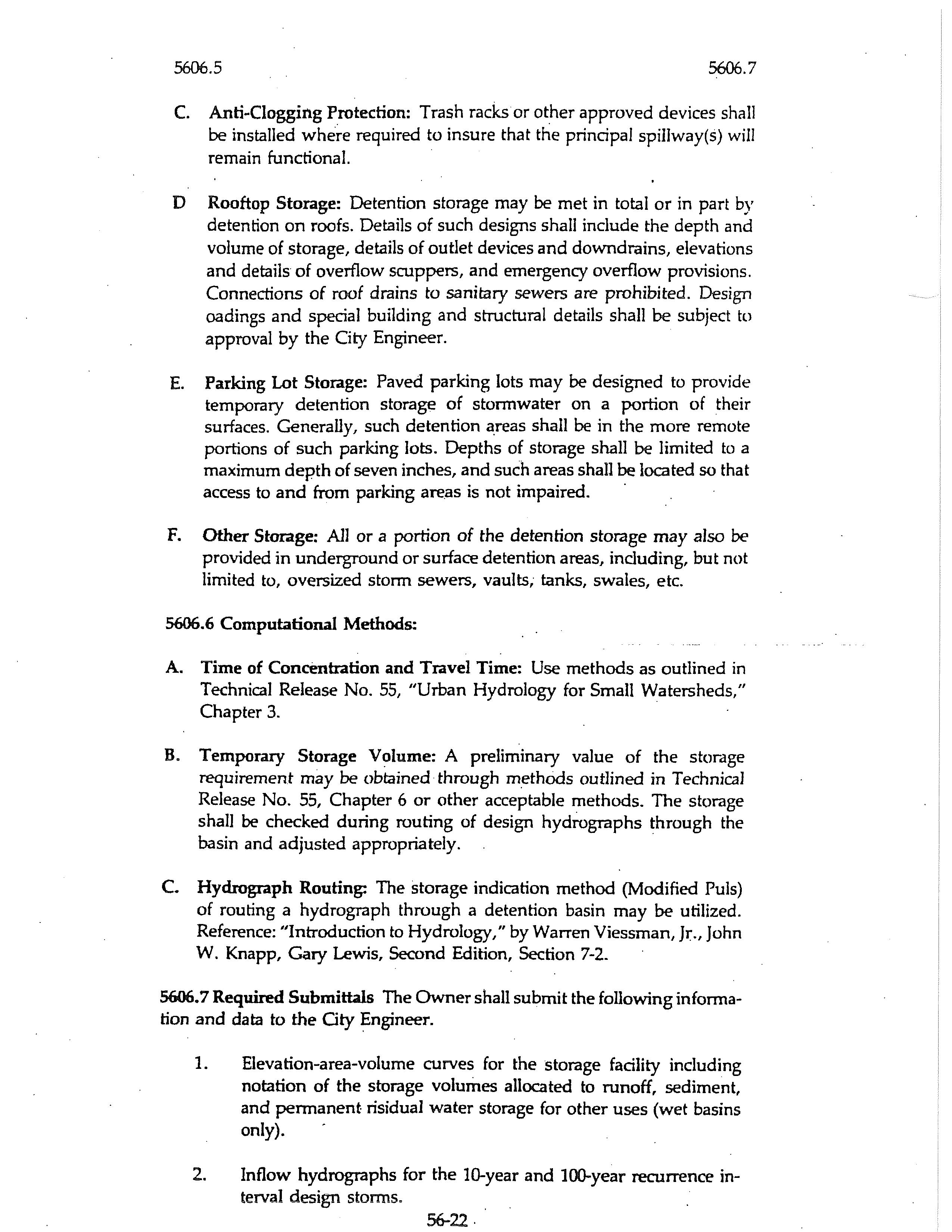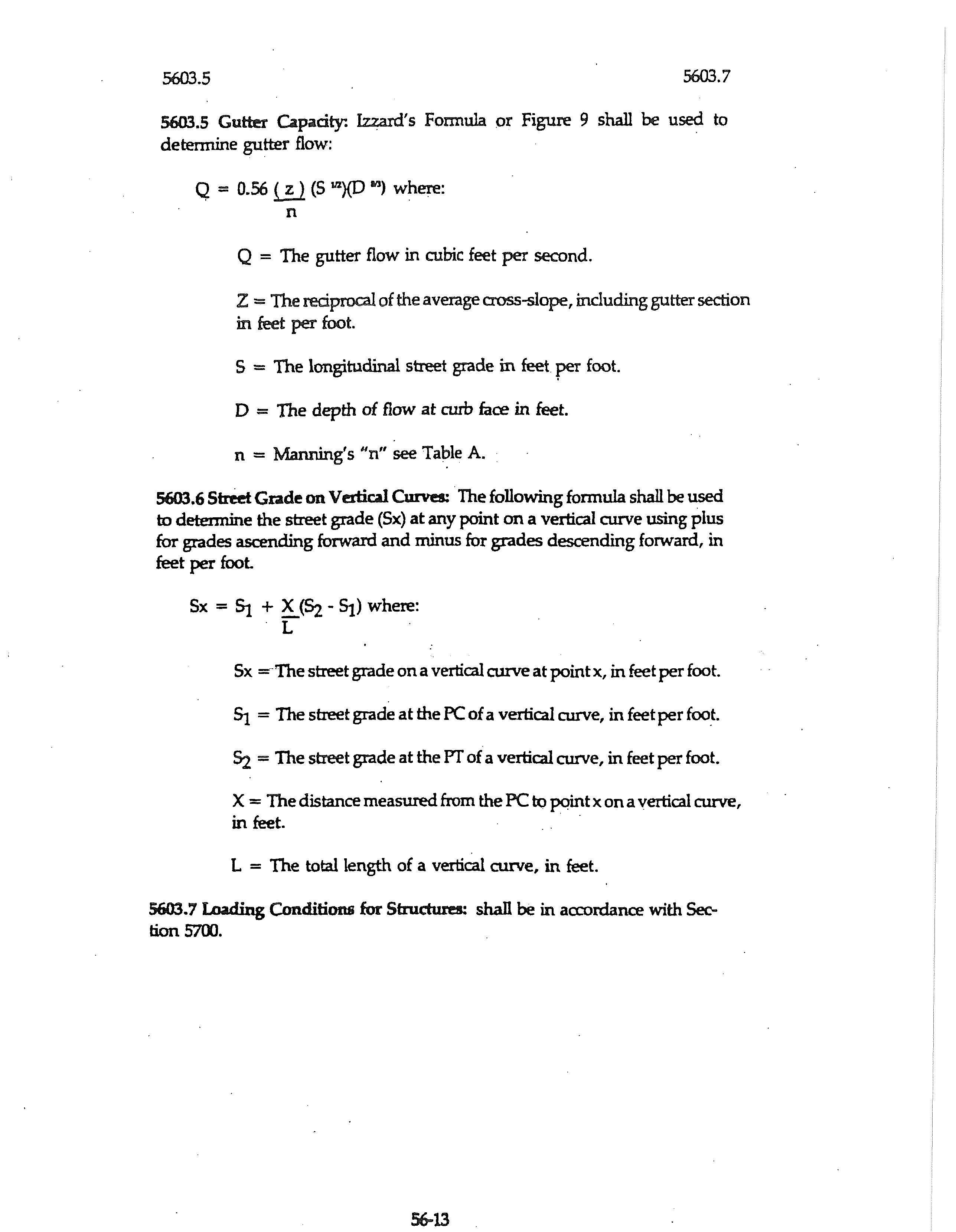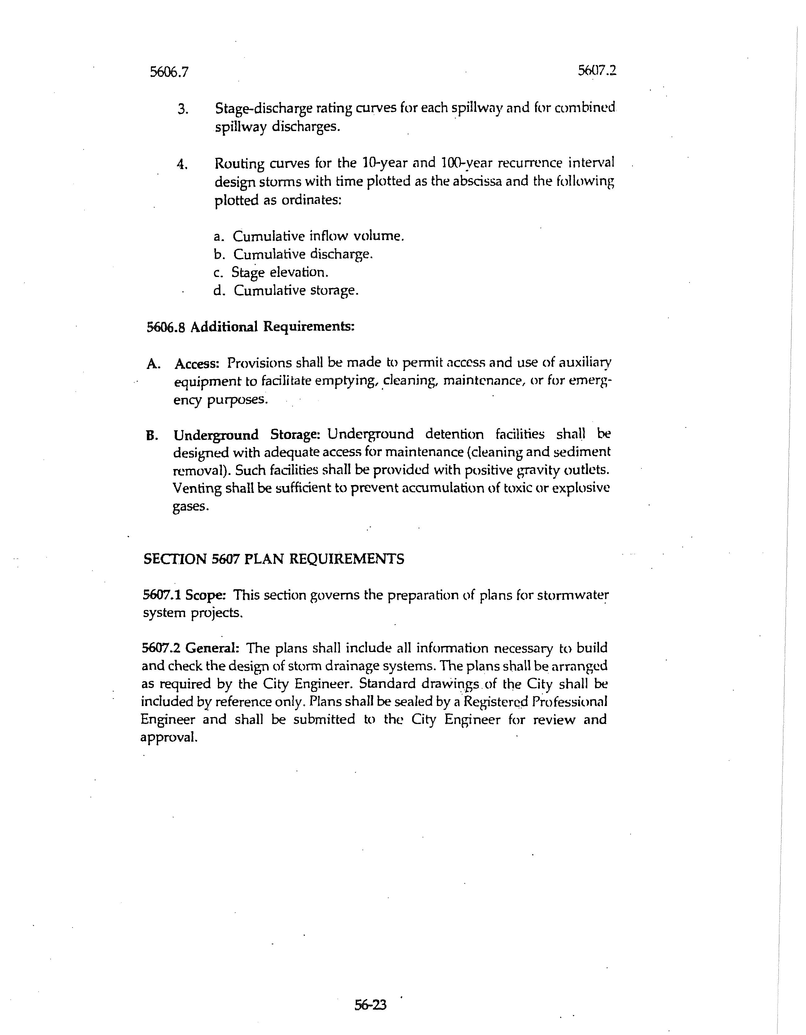 5602.1 Scope: This section sets forth the hydrologic parameters to be used for mmputations involving the definition of runoff mass and peak rates to be acrommodated by the storm drainage system.
