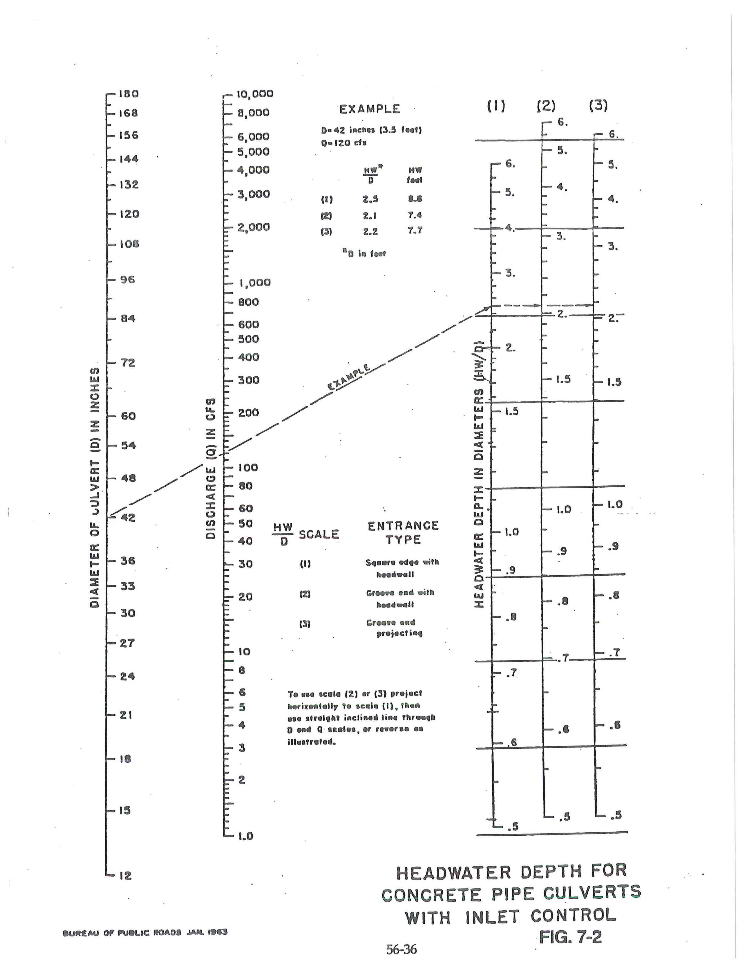 1. Inlet capacities derived from "The Design of Stonnwater Inlets" Johns Hopkins. University, 1956