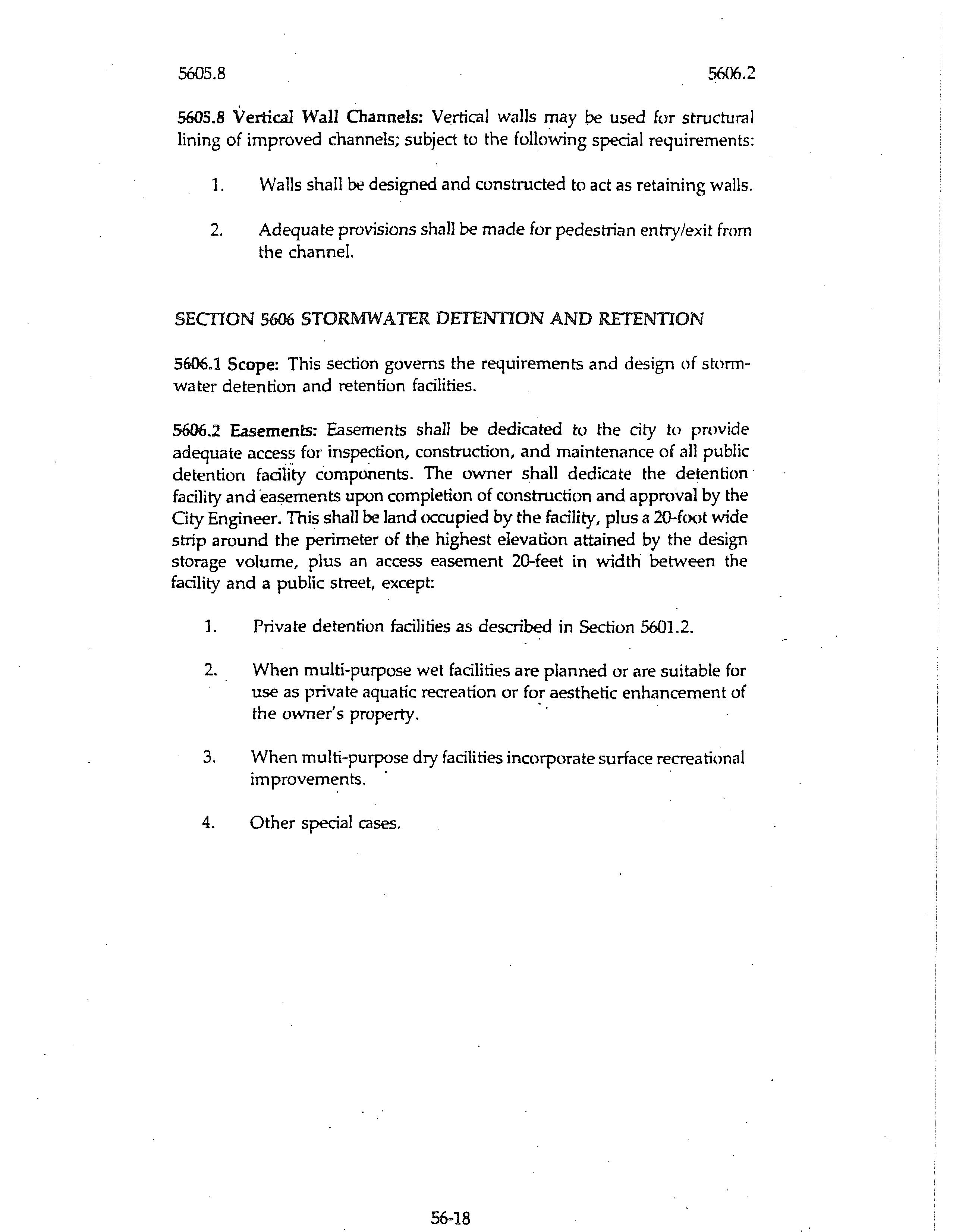 A. Detention/Retention Facilities: Detention may be waived and/or release rates other than those released by Section 5606 may be approved by the City Engineer when: