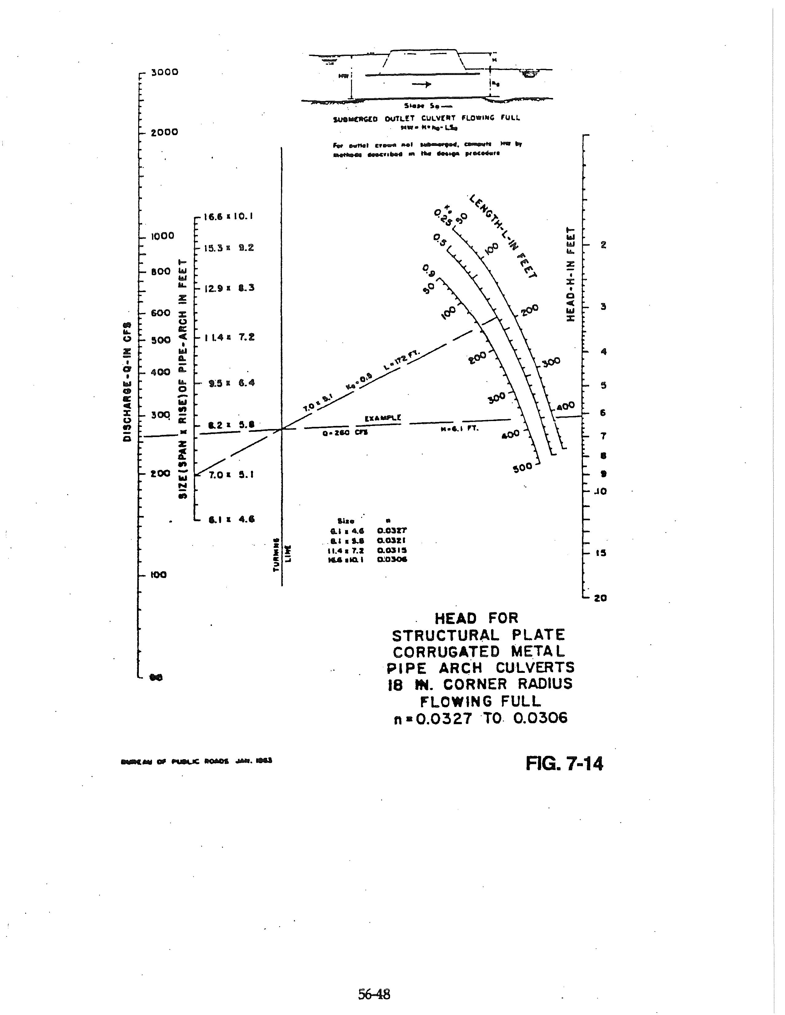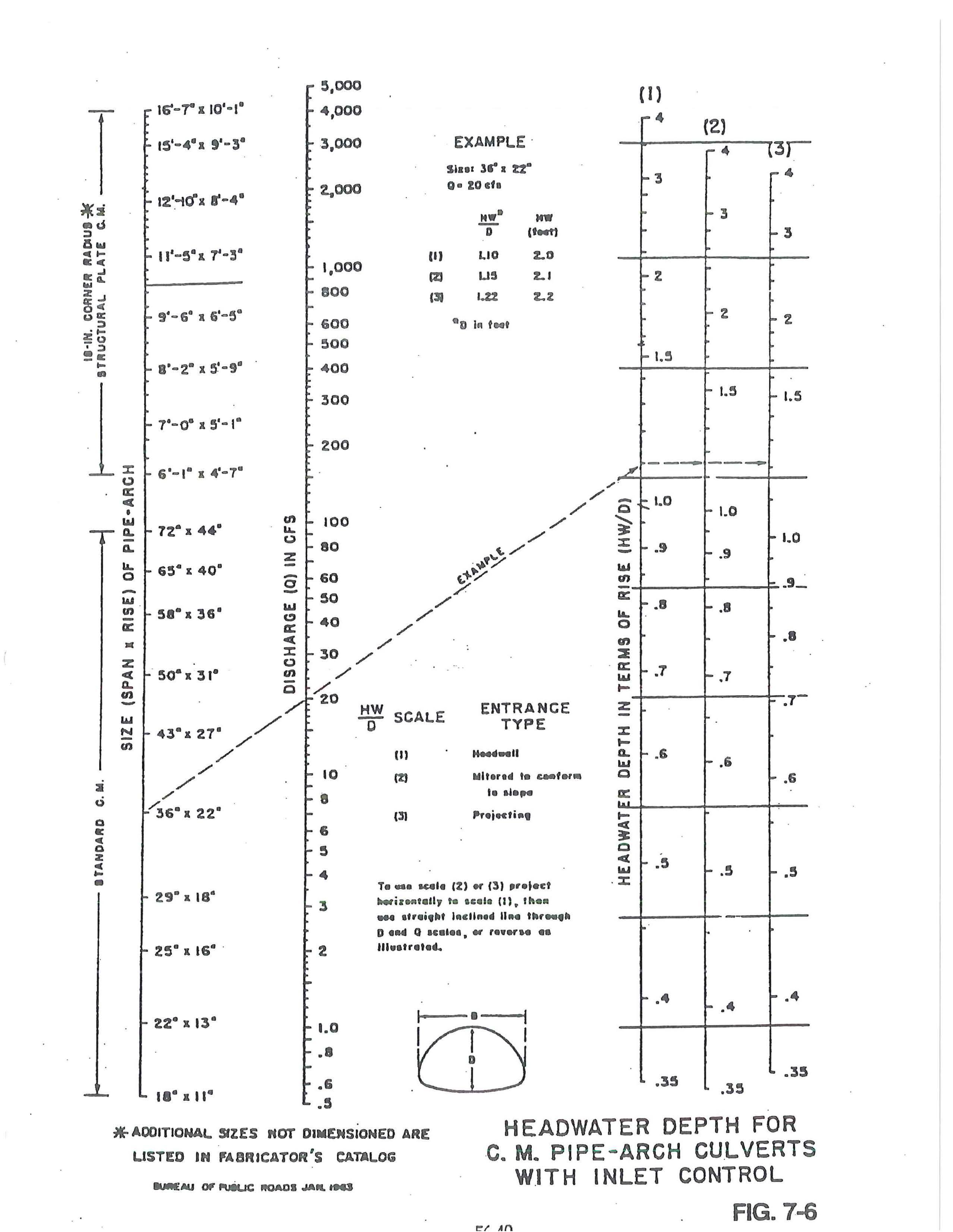 HEADWATER DEPTH FOR C. M. PIPE - ARCH CULVERTS