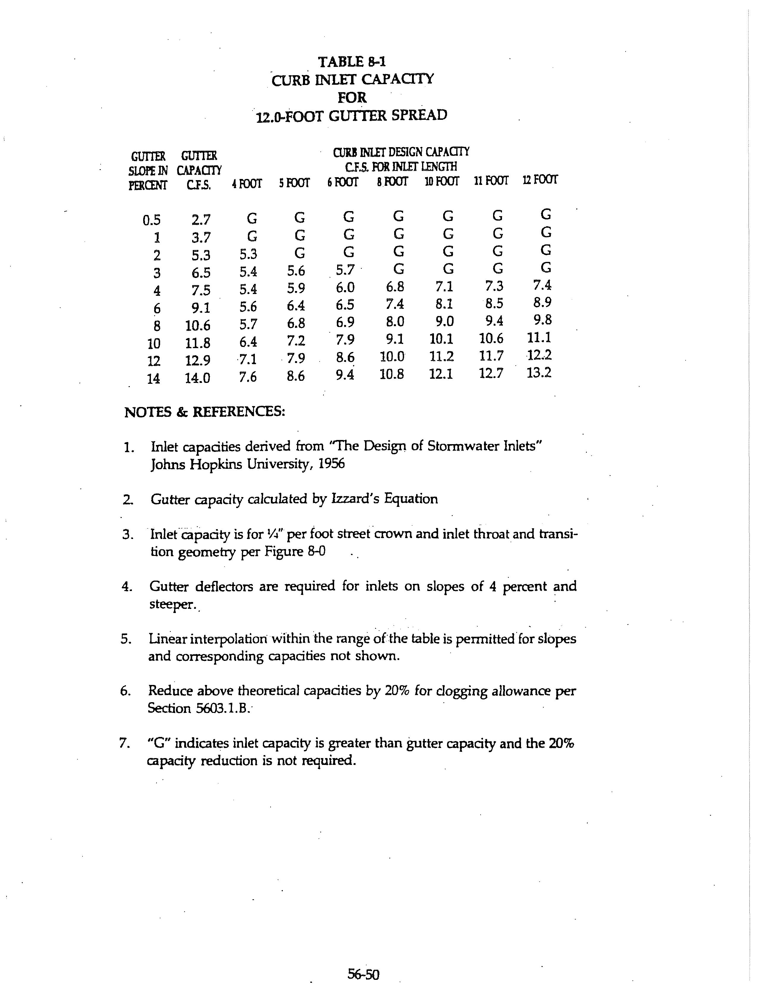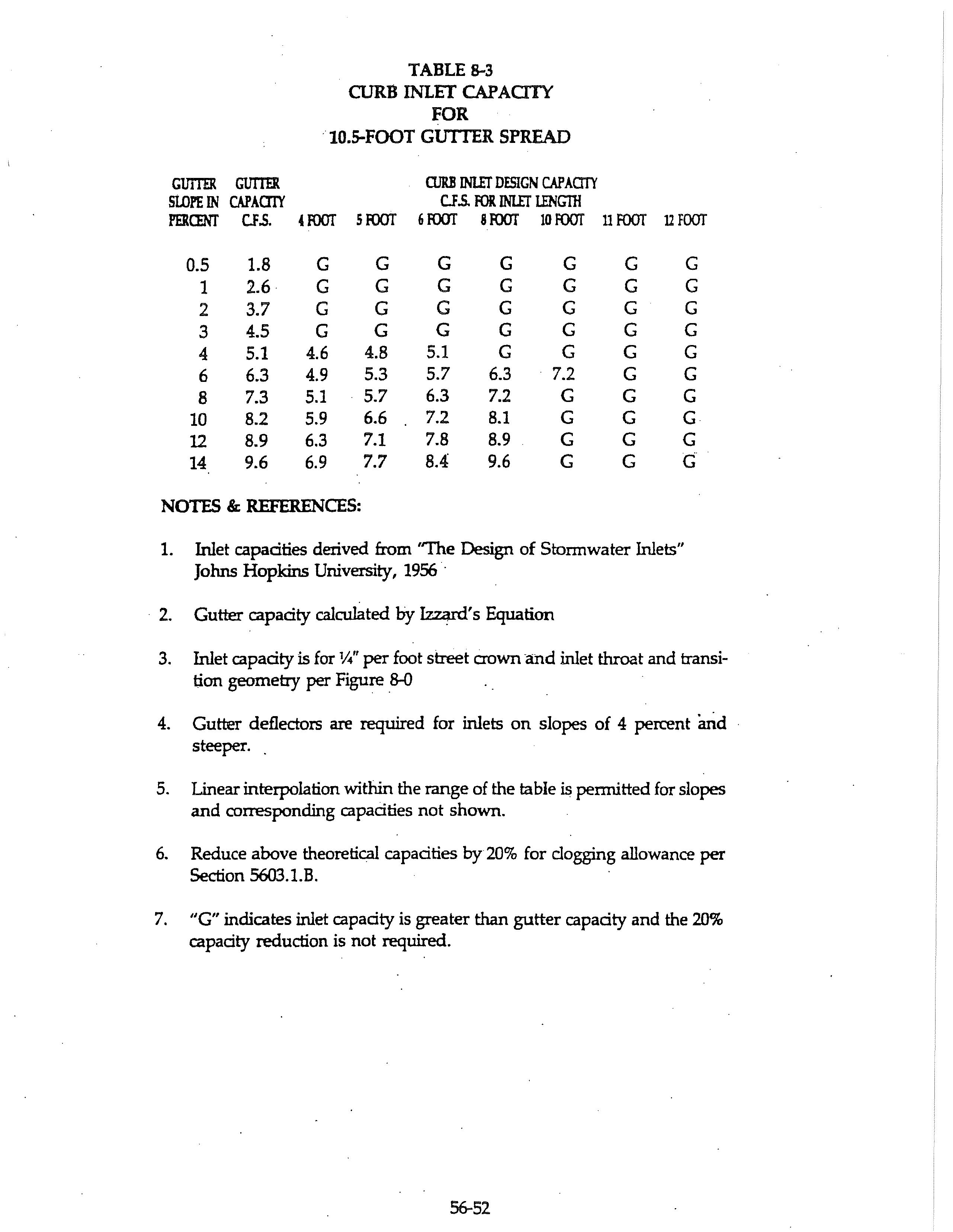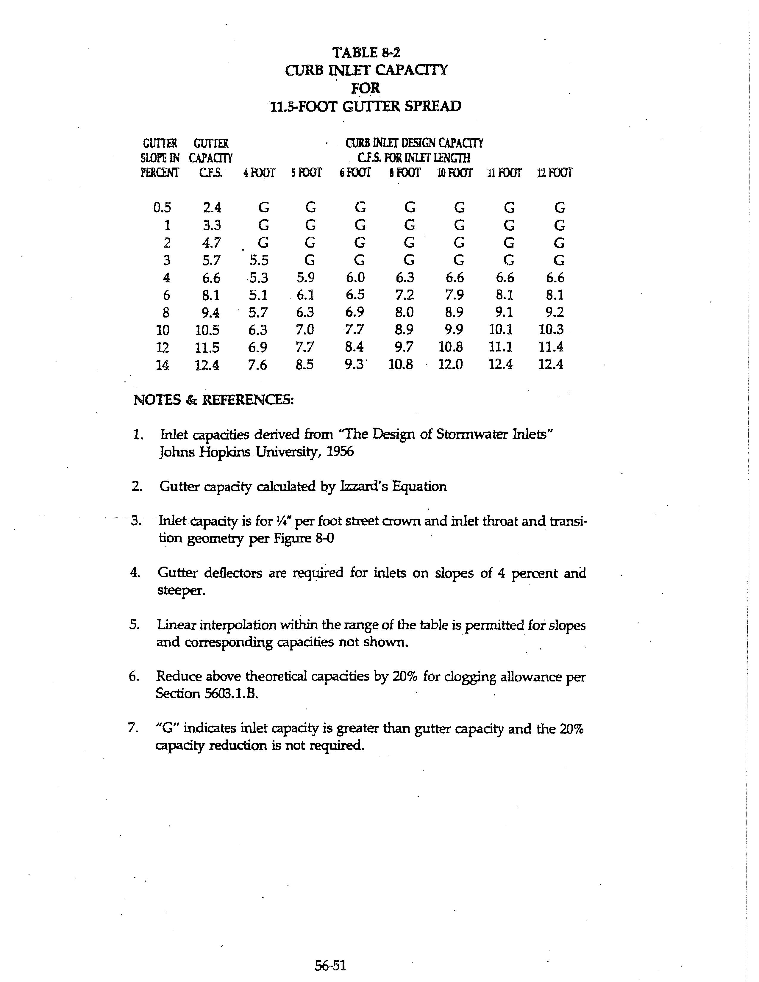 7. "G" indicates inlet capacity is greater than gutter capacity and the 20% capacity reduction is not required.