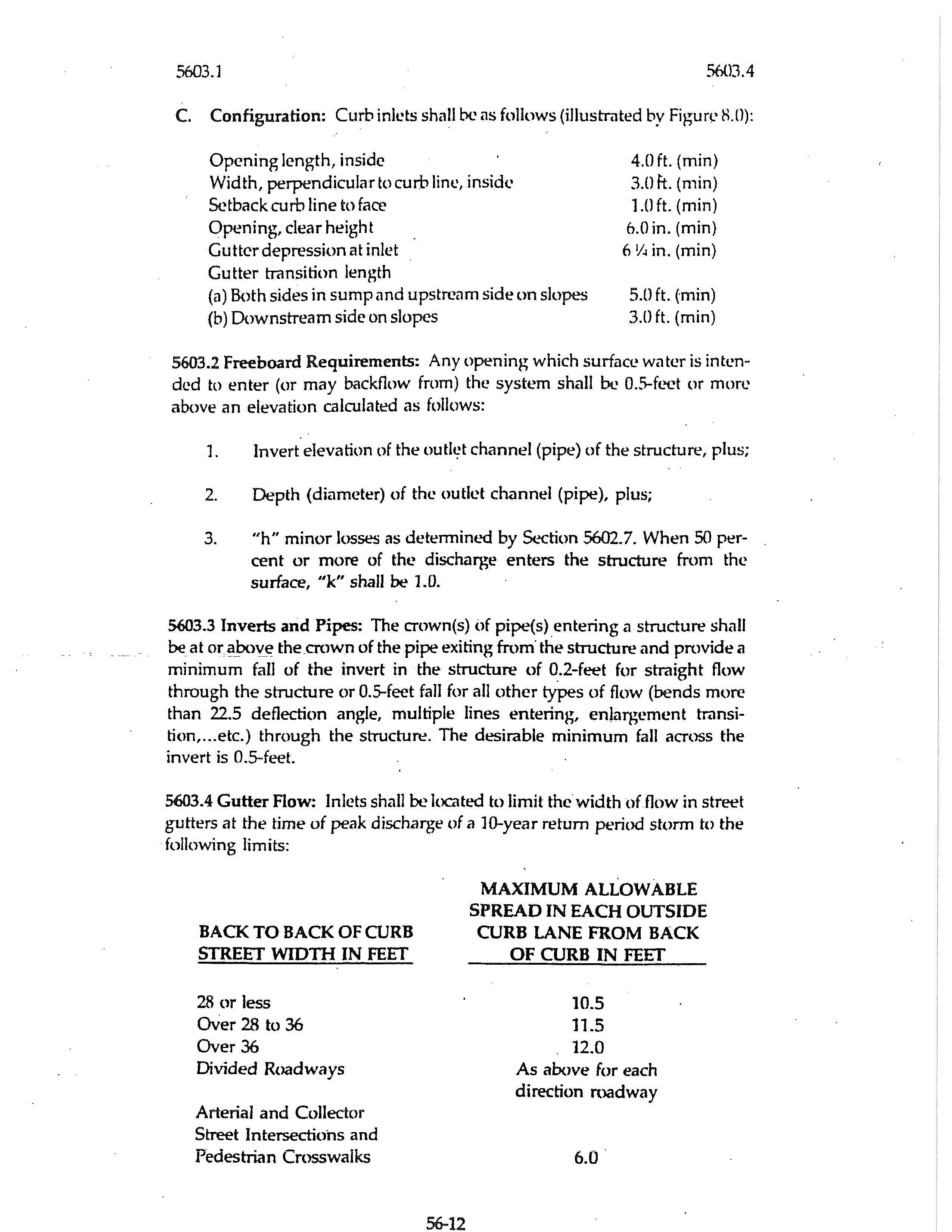 6. Reduce above theoretical capacities by 20% for clogging allowance per Section 5603. 1.B.·