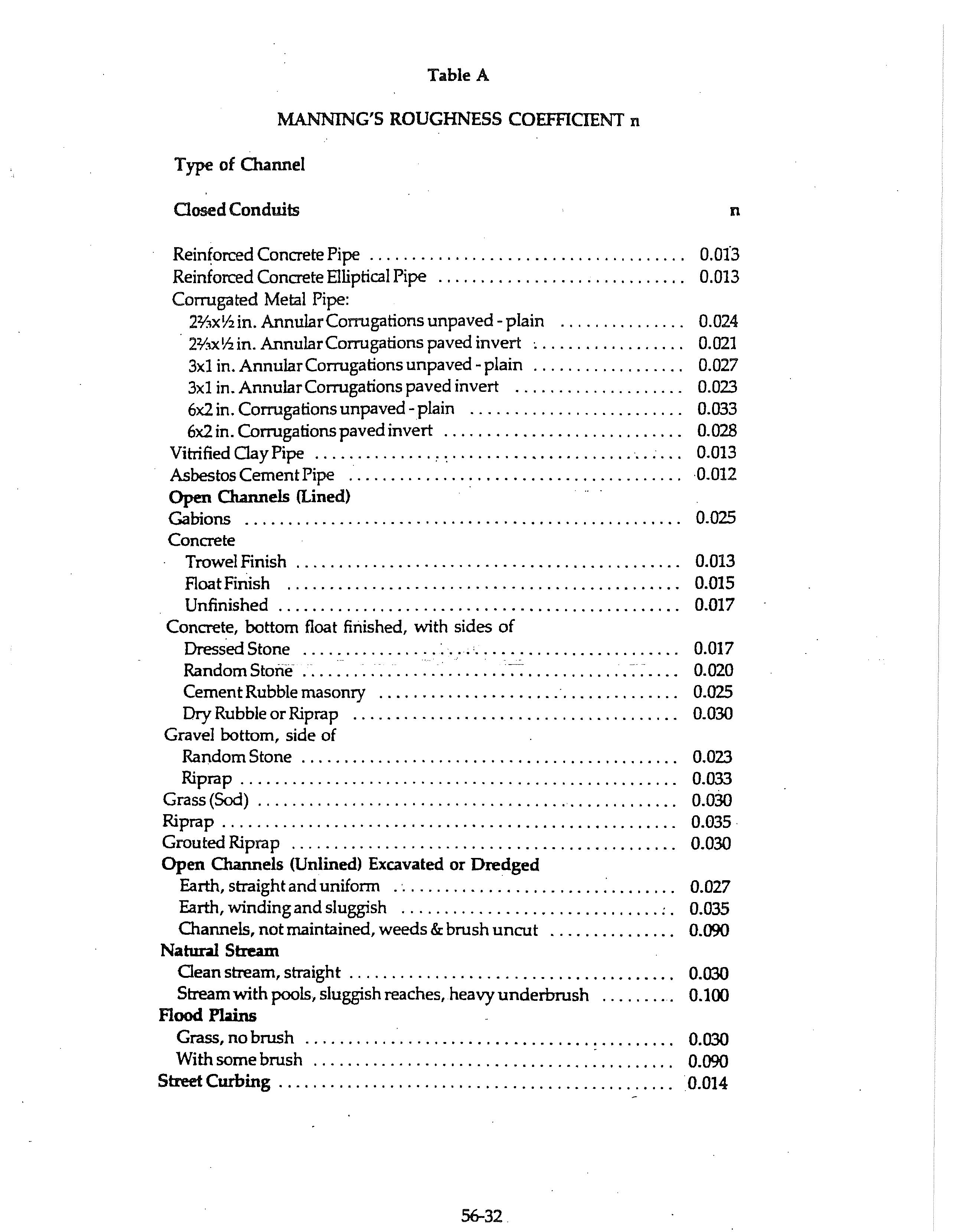 To provide for future development when the upstream channel is unimproved, the following table shall be used for calrula ting TT-