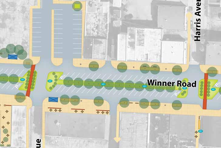 space where people want to be. Bringing more business will necessitate additional vehicle parking provisions and safe, visible, walking connections from neighborhoods with clear navigational guidance.