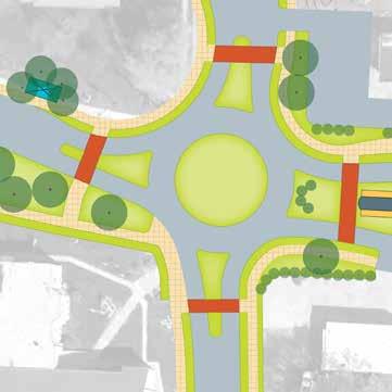 Advantages and disadvantages for each method of traffic control were briefly presented during the charrette. A few of these are summarized in Exhibit 12. Despite the disadvantages of a roundabout, the steering group and the charrette attendees unanimously prefer a roundabout for this intersection.