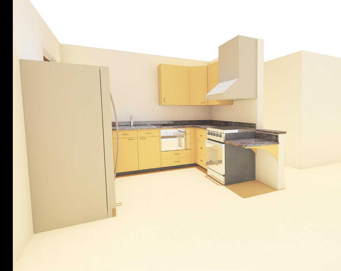 – Option: With the proper space, the kitchen could have a stovetop and a separate wall oven.