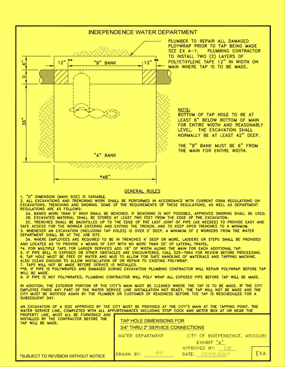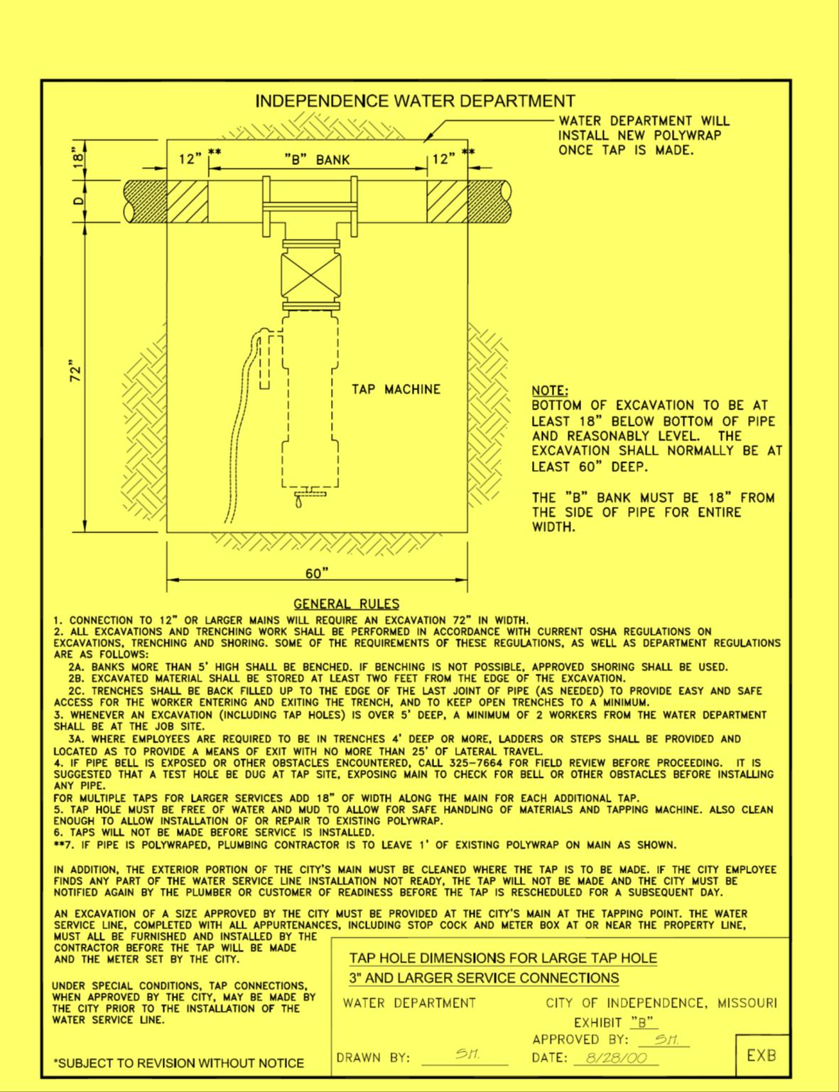 3a) Whenever an excavation (including tap holes) is over five feet deep, a minimum of two workers form the Water Department shall be at the job site.