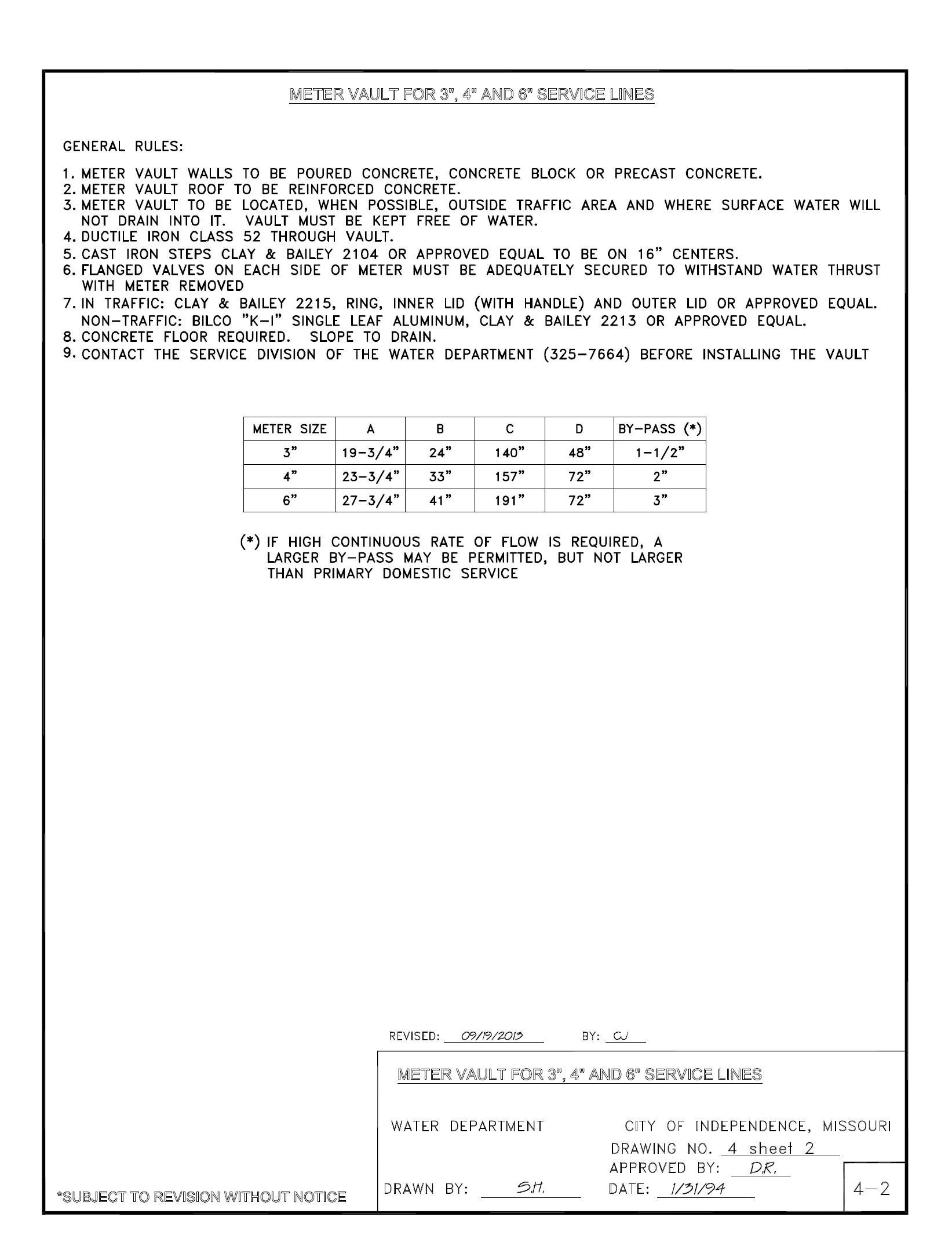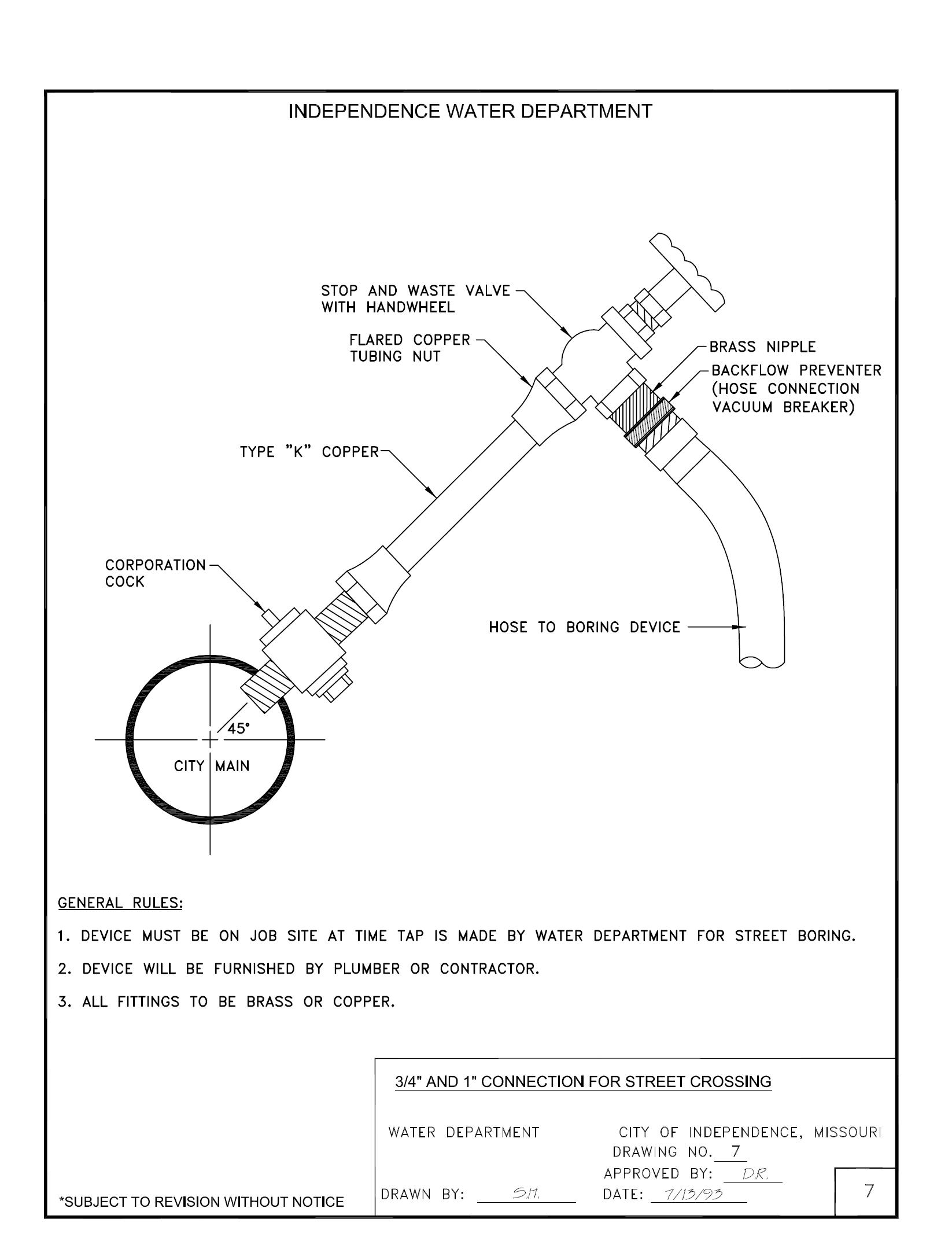 Due to constant progress in the development of materials and methods, some procedures outlined herein may be modified. Upon request, information will be supplied concerning changes and revisions. Persons making regular use of this booklet should maintain contact with the Water Department.