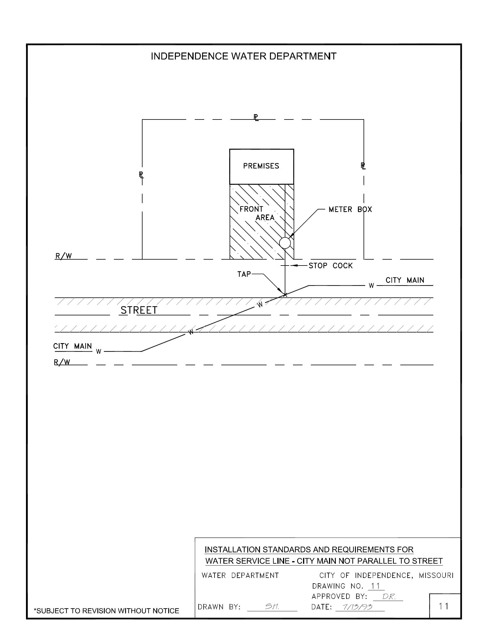 2. The water service line from the “tap” to the premises should be in a straight line perpendicular to the City’s main or master water service line and the face of the premises served.