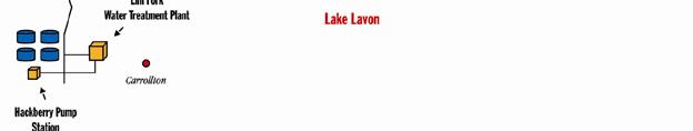Most of Irving’s water travels from Lake Chapman to Lewisville Lake and is then treated by the City of Dallas. Irving owns water rights for water in Lake Chapman, which was previously known as Cooper Reservoir. Some of the City of Irving’s water is purchased directly from the City of Dallas to supplement the Lake Chapman water. The City of Dallas uses surface water from the following sources: Lake Ray Hubbard, Lake Tawakoni, Lake Grapevine, Lewisville Lake and Lake Ray Roberts. The TCEQ has completed a Source Water Susceptibility Report for all drinking water systems that own their sources. This report describes the susceptibility and types of contaminants that may come into contact with the drinking water source based on human activities and natural conditions. For more information on source water assessments and protection efforts, call (972) 721-2281.