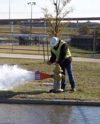 Water is flushed from the system each week through fire hydrants or flushing valves. Typically, more flushing occurs in the warmer months as higher temperatures cause chlorine to dissipate more quickly. Certain types of pipe and areas that are further away from pump stations also require more flushing. While there are limits on what can be used, the city works to preserve the usefulness of this water by collecting it in water trucks for application to landscaping at parks and for contractors to use at newly developed properties.