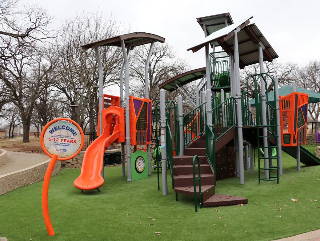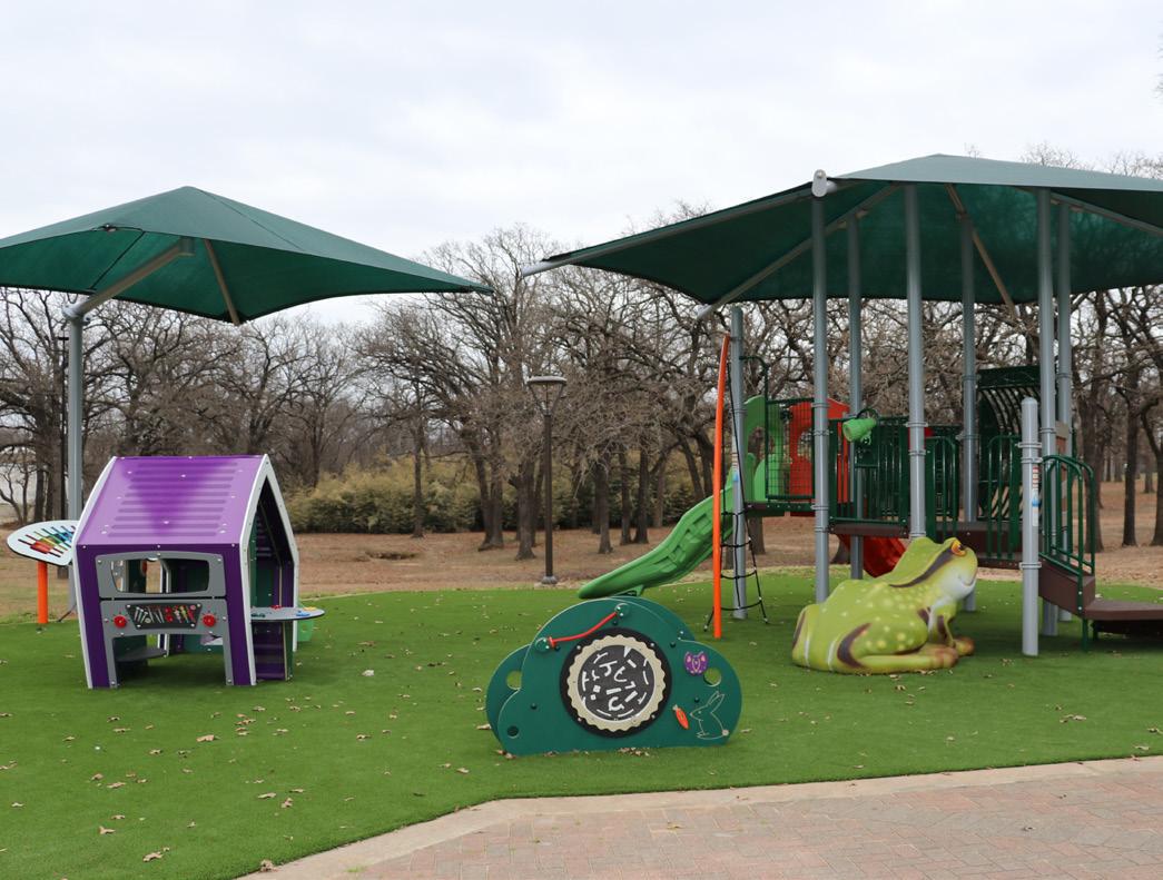 West Park Playground is the first playground in Irving to feature artificial turf as ground cover. The improved surface is the latest innovation in outdoor recreation space and easier to maintain than other playground landscaping.
