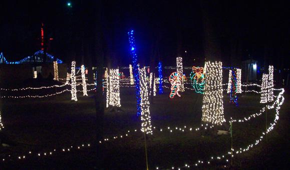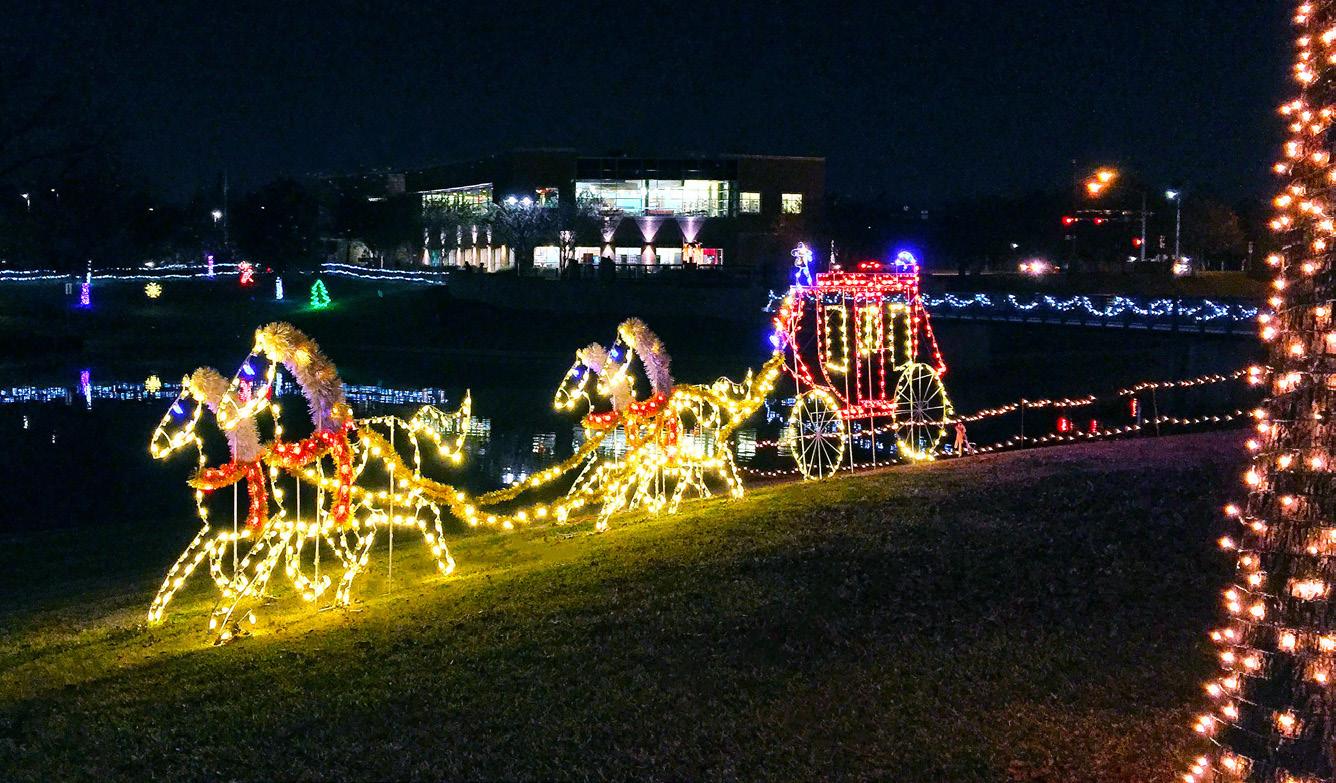 The park is decorated with 60,000 lights on the fences, trees and bridge. Walkways are lighted on each side to keep pathways visible for visitors after dark. City staff will wear uniforms day and night so that visitors can ask questions about the display. Portable restrooms are available. Biking is prohibited through the display. Current COVID-19 governmental orders, including face mask requirements and social distancing guidelines will be observed.