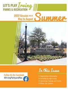 Search Facebook for @IrvingParksandRec and “Like” the page to stay up-to-date with what is going on in Irving Parks and Recreation — events, programs, information and more. Visit CityofIrving.org/Parks for more information. n