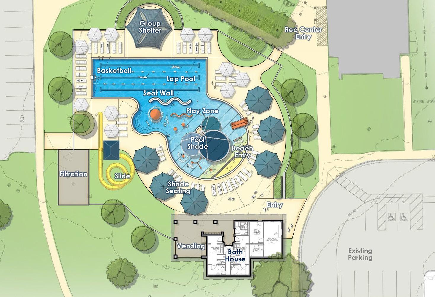 Conceptual design of new Lee Park Pool shown at Oct. 19 Public Input Meeting.