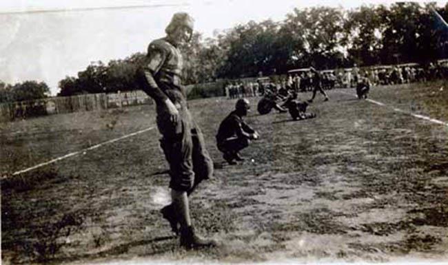 The photos in this exhibit are from the Roy Ricker Collection. They provide an intimate look at schoolboy football in Irving, Texas, during the 1920s. Roy Ricker was born in 1909 in Dallas, Texas, where his father worked as a builder. In 1925, Ricker's father purchased 26 acres along Shady Grove Road just south of Irving and decided to try his hand at farming. Ricker attended Irving High School where he was an avid football player. He was a member of the Irving High School football teams of 1928 and 1929. During the summer of 1929 the team went to Bridgeport, Texas, for their preseason, summer training. The on-field photos in this exhibit were taken during practice at Bridgeport. The photos provide a glimpse into high school football at a time when it was just beginning to take hold in Texas.