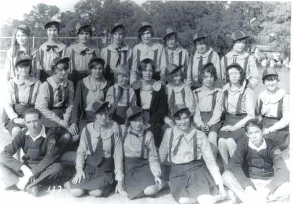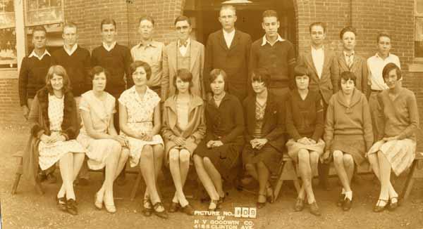 Middle row: Evelyn Anderson, Theresa Miller, Doris Harkey, Billy Gilbert (mascot), Frances Hillman, Amy Kate Jenkins (teacher), Gail Lucas, Maidie Hart, Dorothy Lee.
