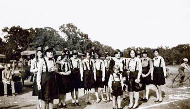 The Irving High School Pep Squad assembles along the sidelines during a game in Irving, 1929.