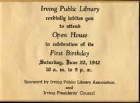 Irving received its first donation on April 17, 1941. Scarcely three weeks later, the Irving library was in business.