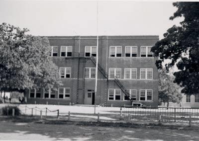 Description: Children from the Twin Wells community attended school in Irving, which was about two miles to the west of Twin Wells. The Irving school district built this three-story red brick school house in 1913. It was torn down in 1959.
