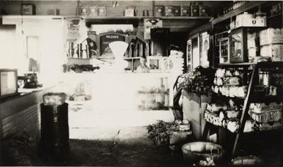 Description: H. P. Hinton, Sr., founded Hinton's Twin Wells Store in 1924. This is an interior view of the store, c. 1930.
