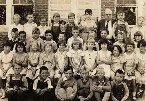 Description: Irving school's second grade class, 193435. The children of the Twin Wells community attended school in Irving. Irving was about two miles west of Twin Wells.