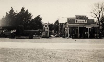 Description: H. P. Hinton, Sr., founded Hinton's Twin Wells Store in 1924. This is an exterior view of the store in 1932. The store was located along Eagle Ford Road (later Singleton Blvd.) between Dallas and Irving.