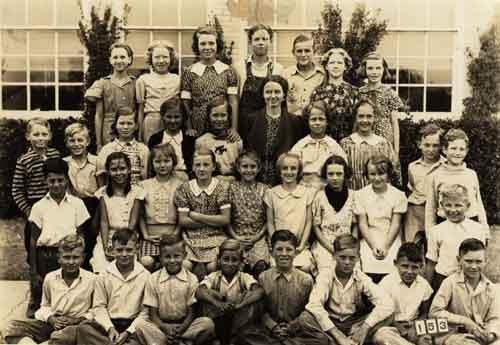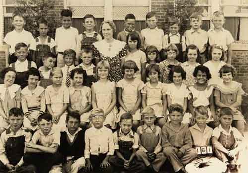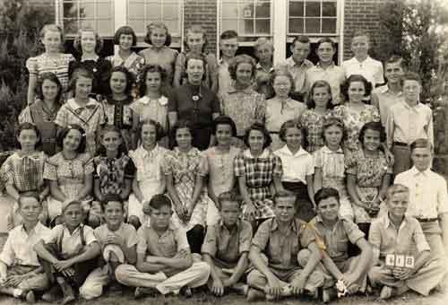 Description: Irving school's sixth grade class, 193839. The children of the Twin Wells community attended the Irving schools. Irving was about two miles west of Twin Wells.