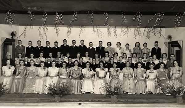 Description: Irving elementary school graduation class, 1940. The children of the Twin Wells community attended the Irving schools. Irving was about two miles west of Twin Wells.