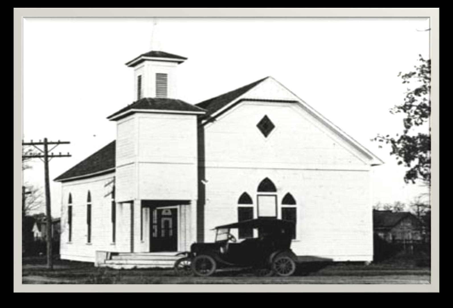 Description: First Baptist Church. Irving's founders donated a lot for the construction of a Baptist Church. A temporary structure was built on the lot in 1909. This frame building was built in 1911. It served as the sanctuary until the present-day building was built in 1951.