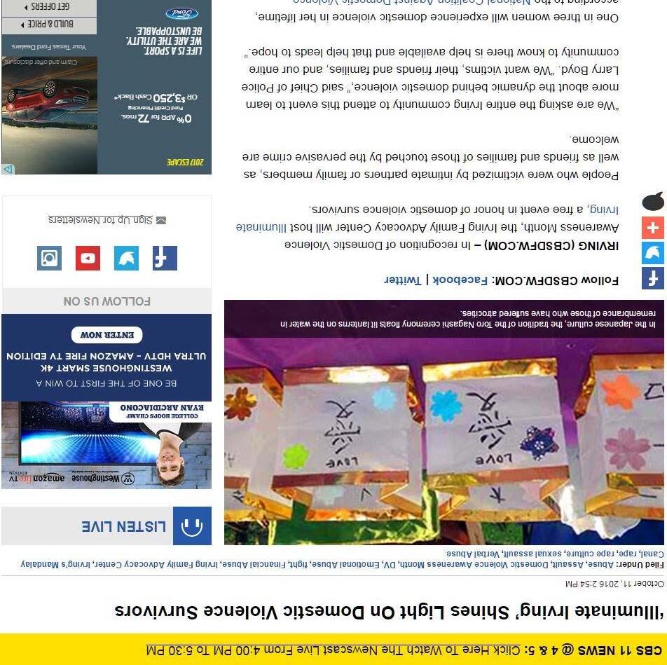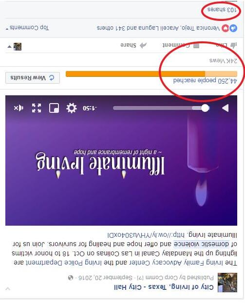 We developed a common look and feel to all material and employed each Irving communications channel to educate residents. The work began in February with a public introduction in May. We staggered topics over the next five months and capped the campaign with a community event, Illuminate Irving: An Evening of Remembrance and Hope, during October’s National Domestic Violence Awareness month.