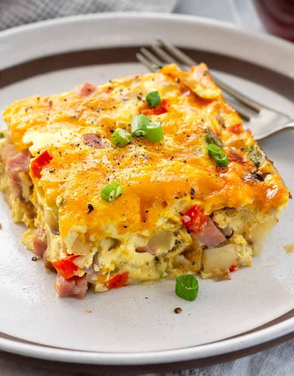 In a large bowl, beat eggs and add all other other items, stir well. Pour into the prepared bundt pan and cook 40 minutes. Serve with toast and a side of salsa. This will feed 10 people or 8 really hungry ones.