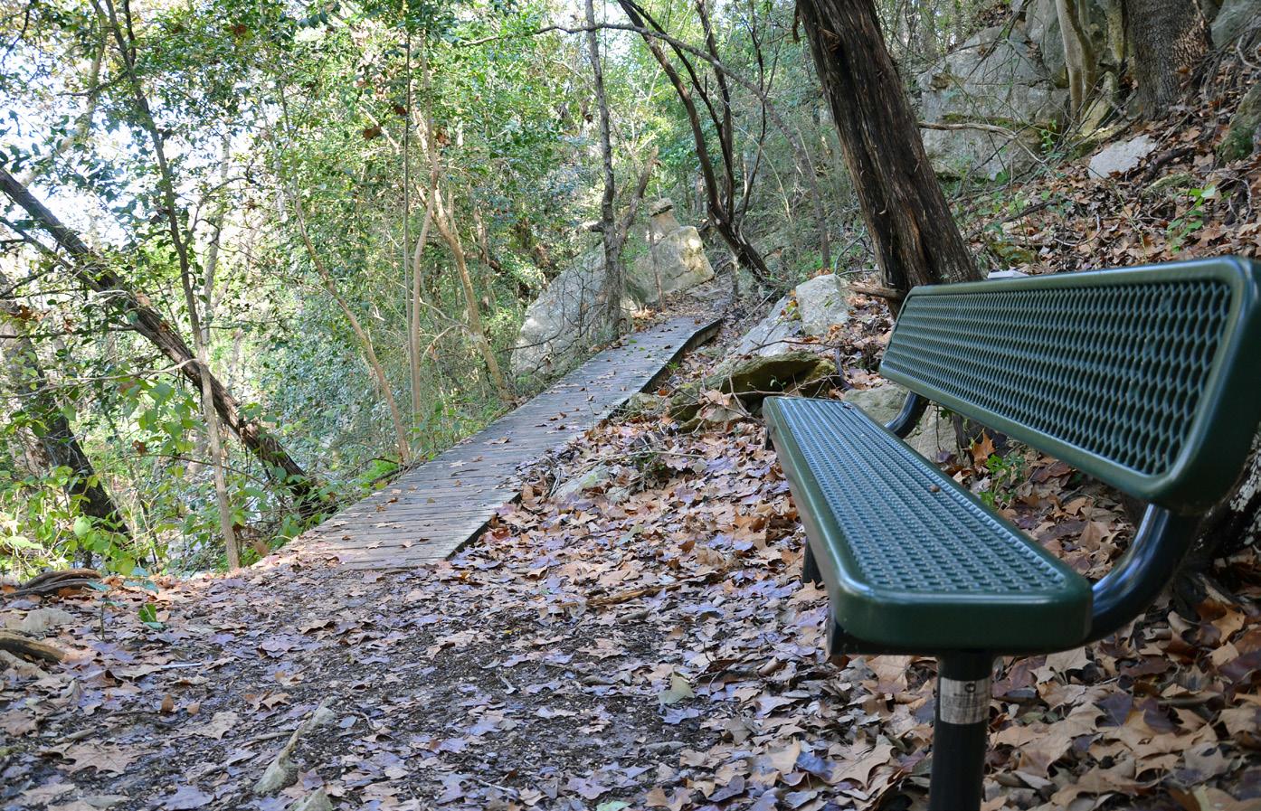 Smith Greenbelt provides the citizens of Lakeway with a short, but wonderful hiking trail, which wanders along Hurst Creek. It is a fabulous place for a family outing, a lunchtime jog, or to walk the dog (on a leash, of course). The 4.5 acre greenbelt was made possible through a generous donation from Coleman and Mary Smith.
