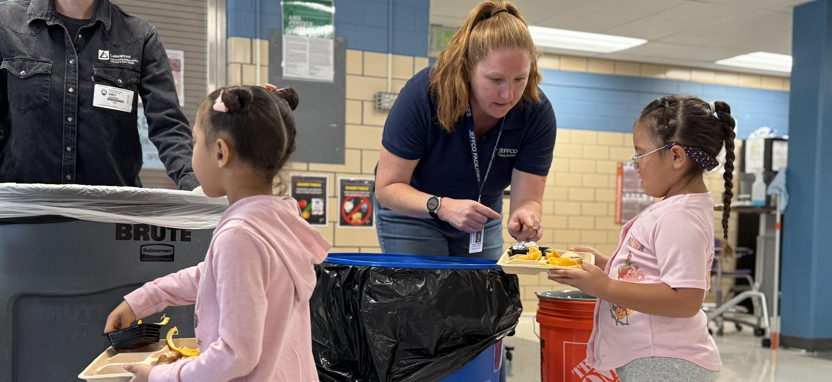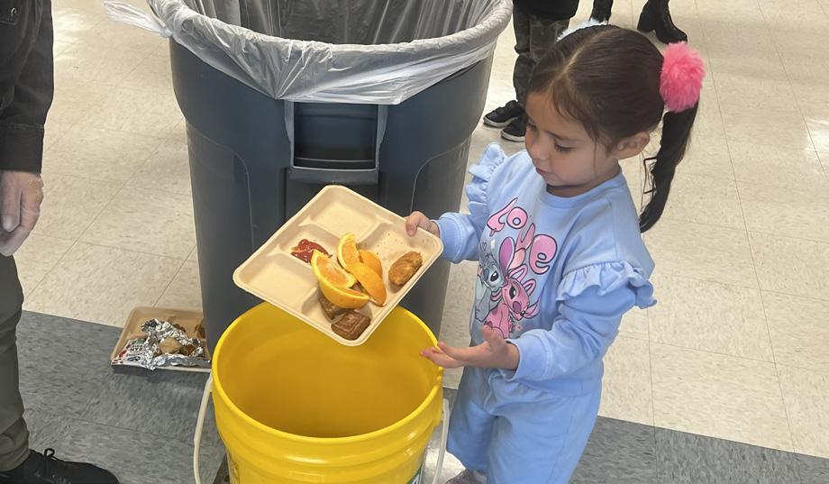 Students at Rose Stein Elementary learn how to separate their lunch leftovers so that much of it can be composted, reducing the amount that is sent to the landfill.