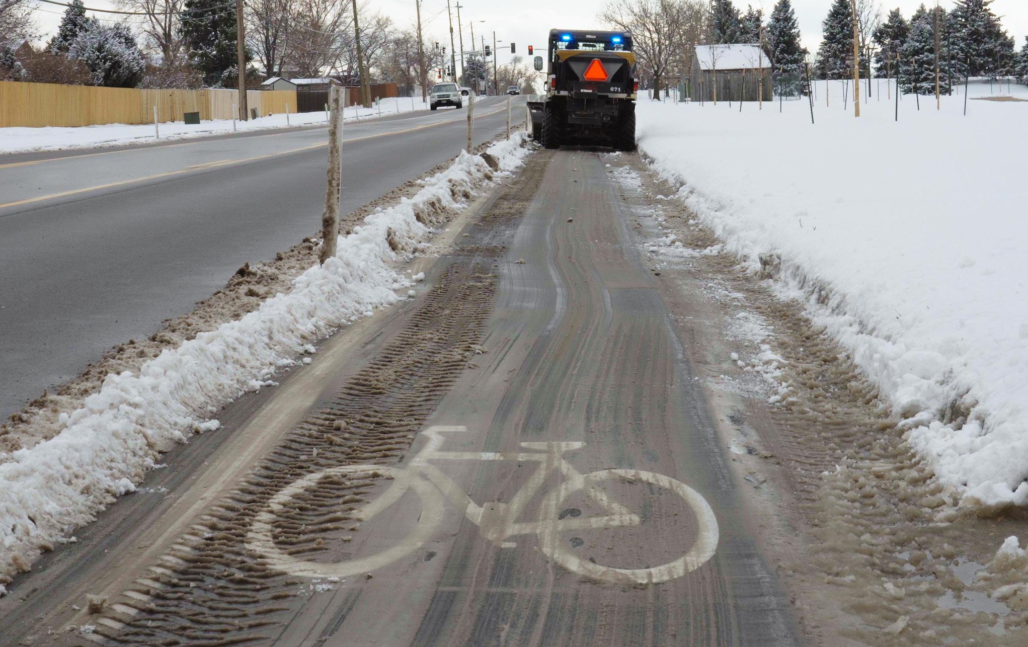 The Public Works Department uses scaled-down snowplowing equipment to keep Lakewood’s new separated bike lanes on Garrison Street, Denver West Parkway and Harlan Street usable during the winter. For more information about snow clearing on shared-use paths and bike lanes, visit Lakewood.org/SnowPlan.