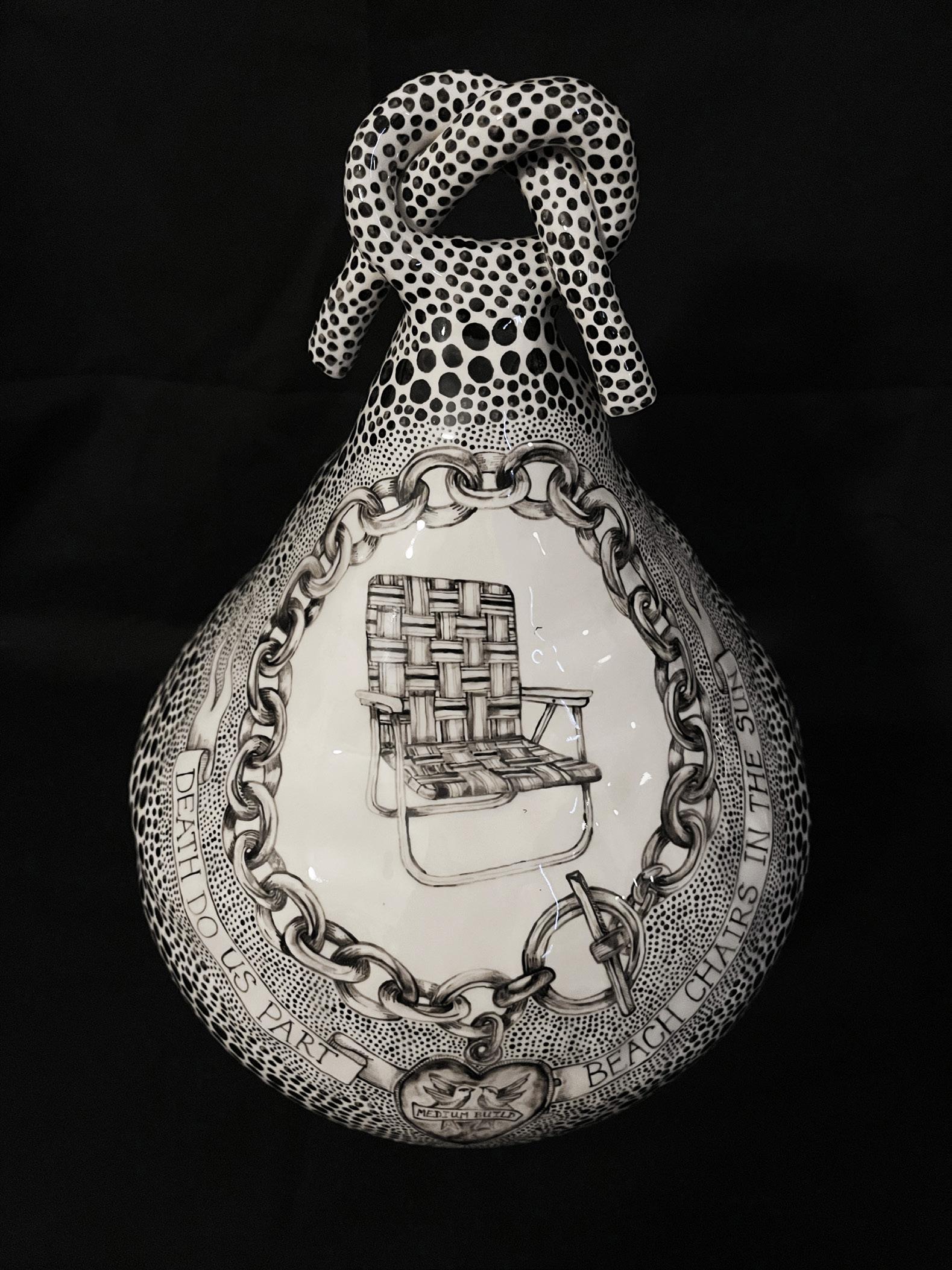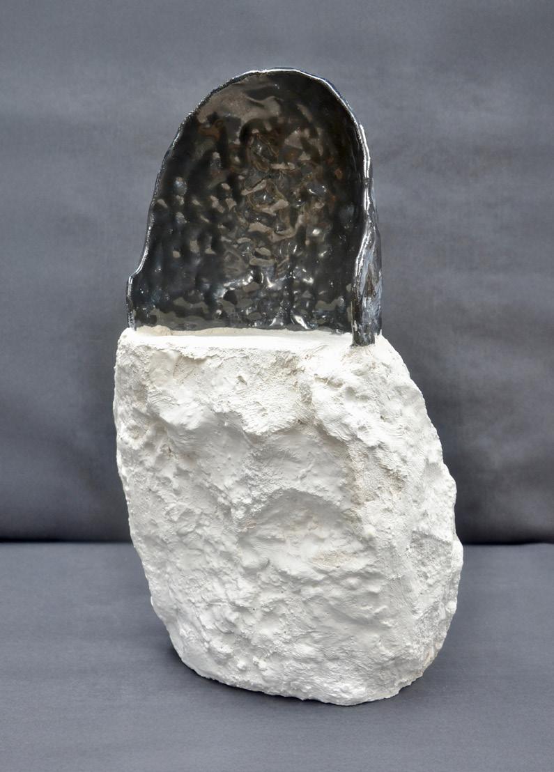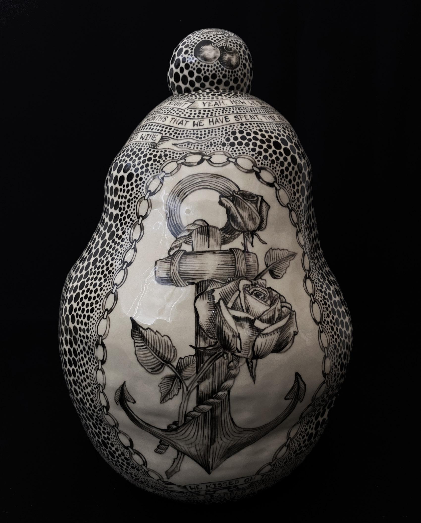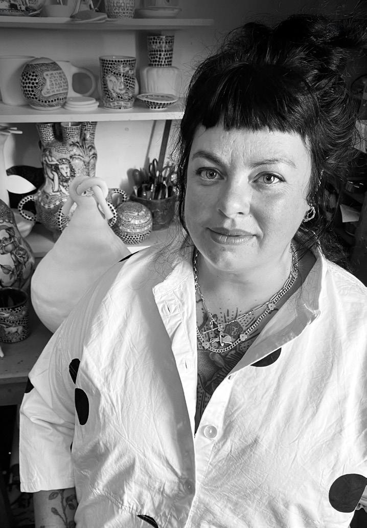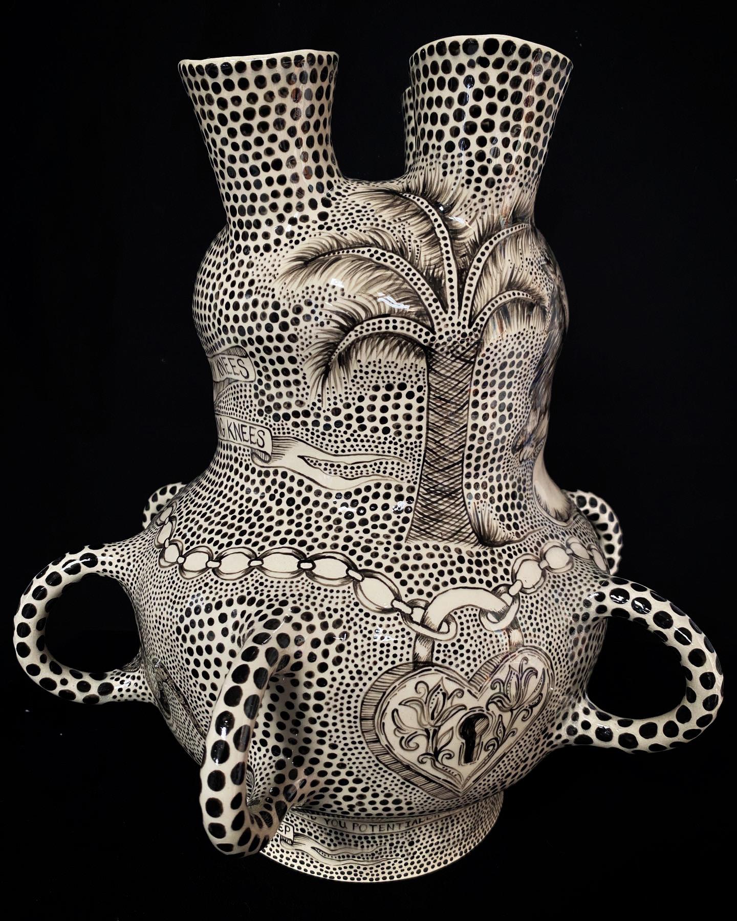 Utilising primarily white mid-fired clay and black underglaze, Rosanagh May’s practice has a very distinctive visual language, creating lyrical ceramic sculptures that combine elements of gothic fiction and surrealist humour. Forms seemingly shift between decorative, impractical and utilitarian, inviting the viewer to reimagine our expectations around the role of contemporary ceramics.