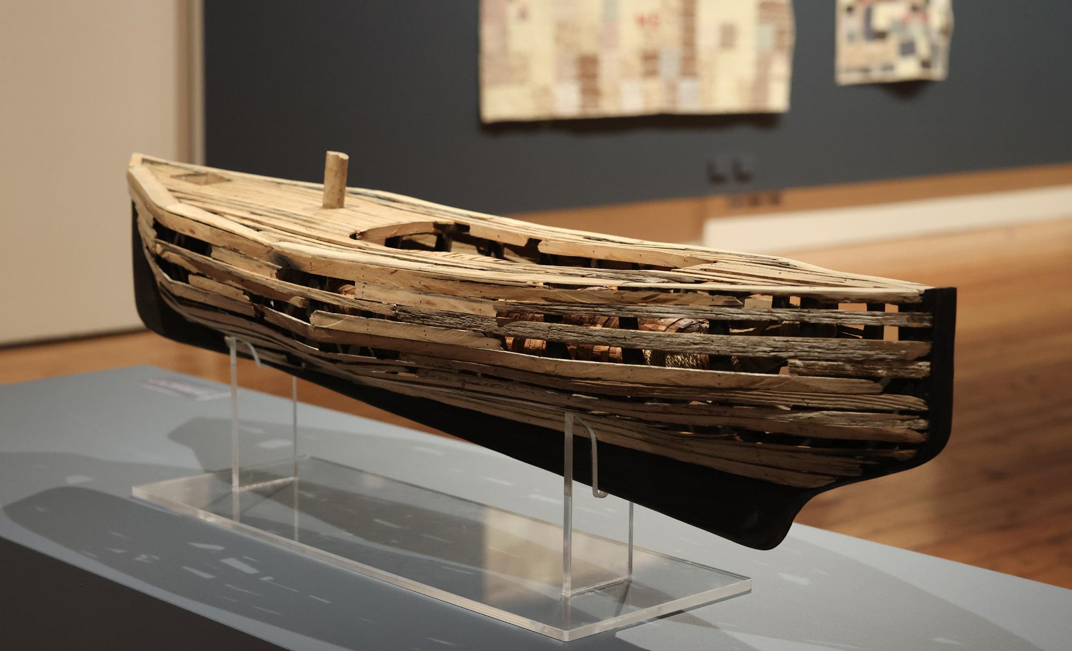 The work includes contexts and experiences, skills, and knowledge, wrapped into and around the practices of traditional canoe making interwoven with ship building. The design is a nod to the traditional while looking forward beyond the contemporary design. My found materials within this work have many physical and spiritual links to my Ancestral past. It’s the driftwood itself — sun-bleached, weathered, and still standing in solitude that always calls me to continue the journey first undertaken by my ancestors.