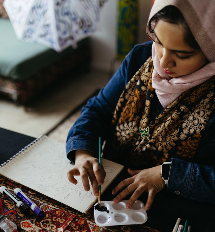 Halima’s creative reach extends beyond gallery spaces into community and educational settings. She has led numerous Arabic calligraphy workshops at schools, festivals, and cultural events across Tasmania, including extensive cultural awareness sessions during Ramadan through the City of Hobart. Her workshops are designed to foster inclusivity, belonging, and intercultural dialogue, and have become a powerful platform for promoting cultural understanding through the arts.