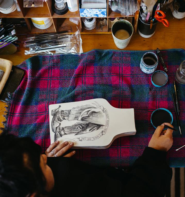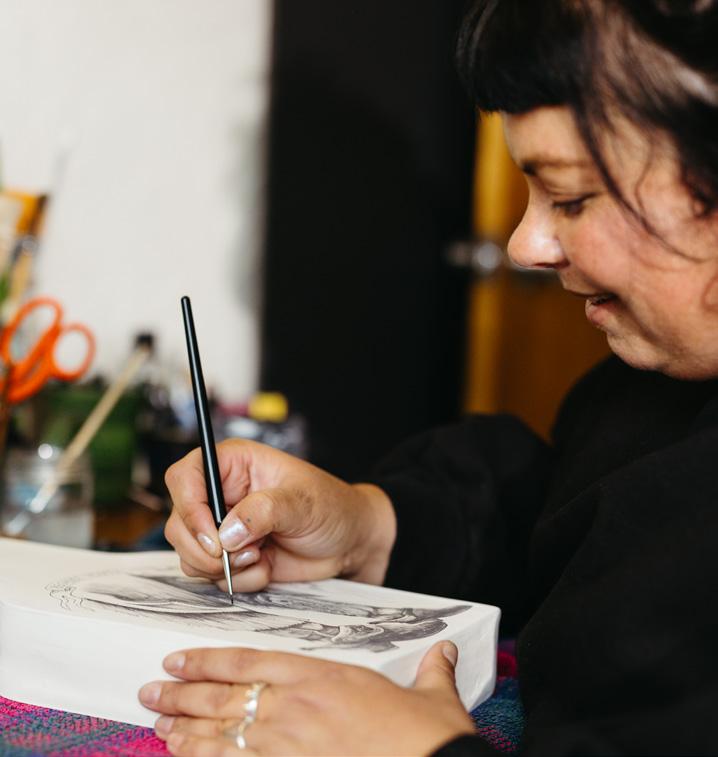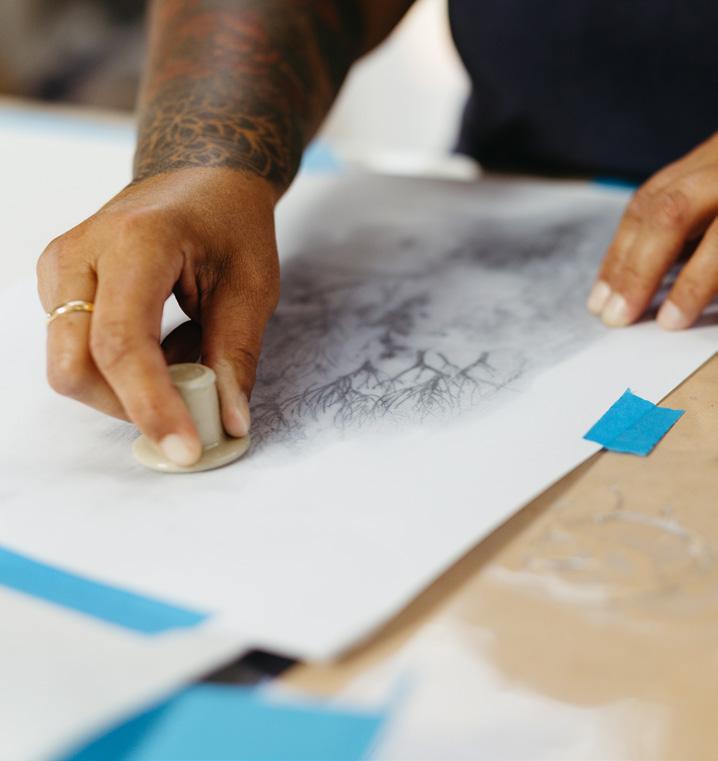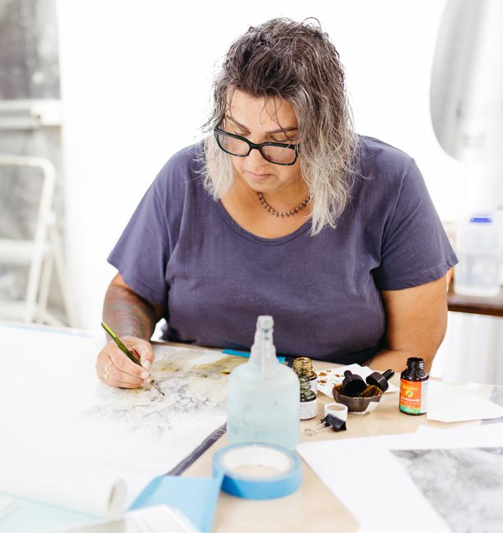 Projects include a recent Artist-in-Residence at the Devonport Art Gallery; The Country Road + NGV First Nations Commissions for the National Gallery of Victoria’s exhibition — My Country; and commissioned display panels for the Burnie Civic Centre.
