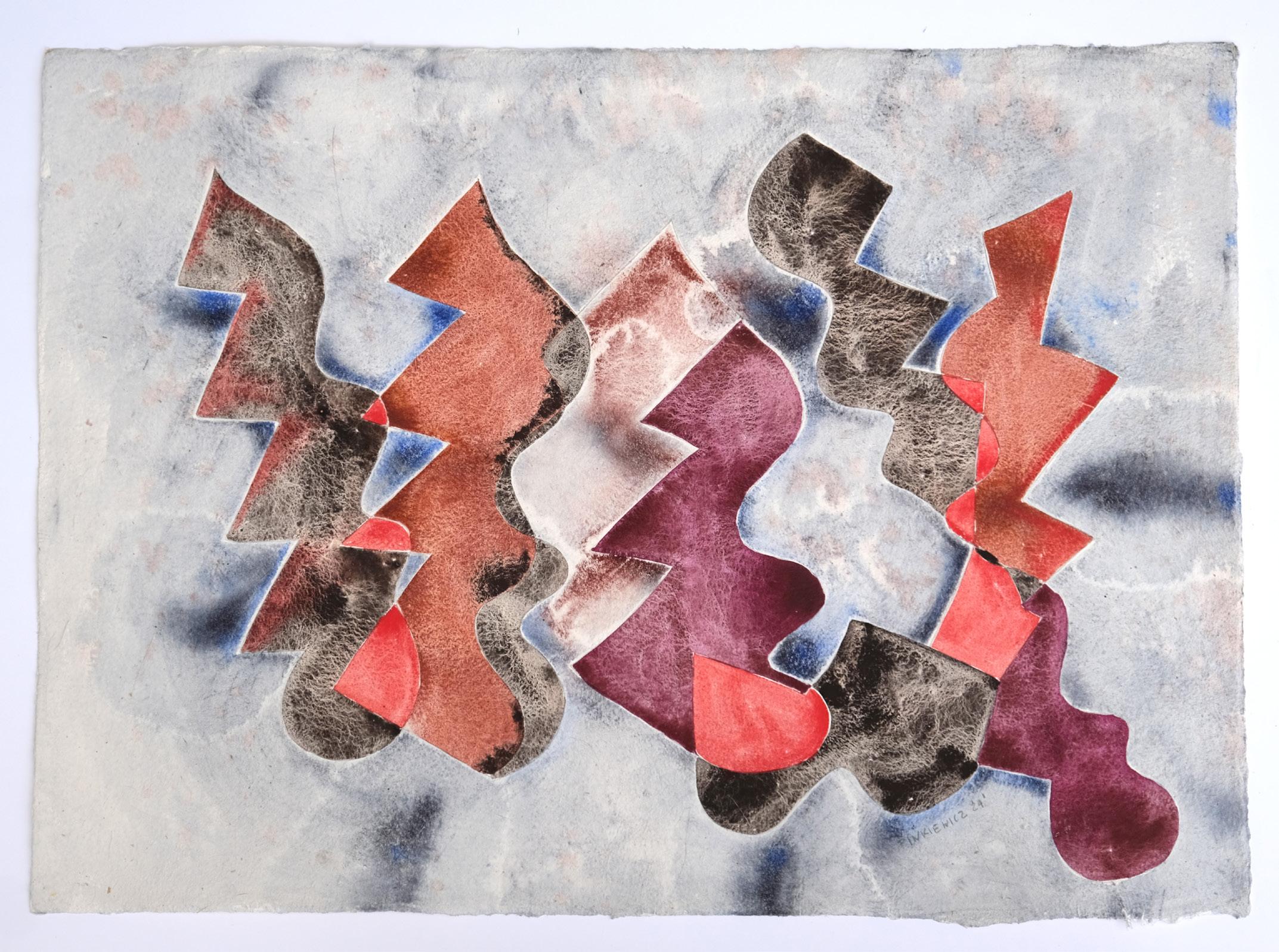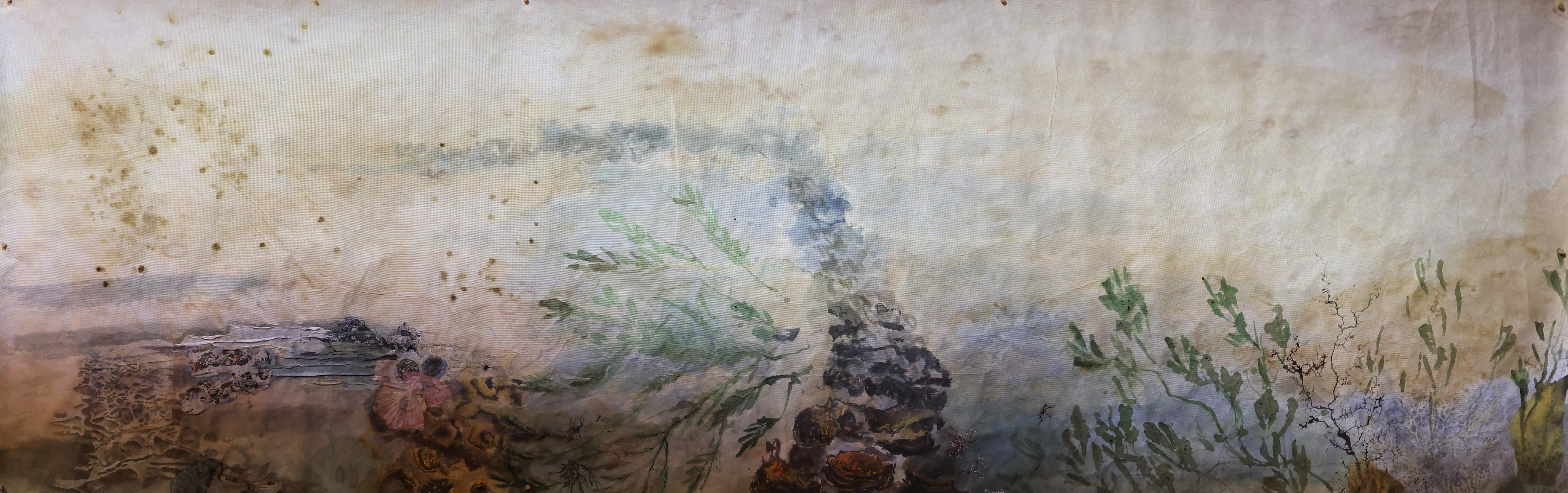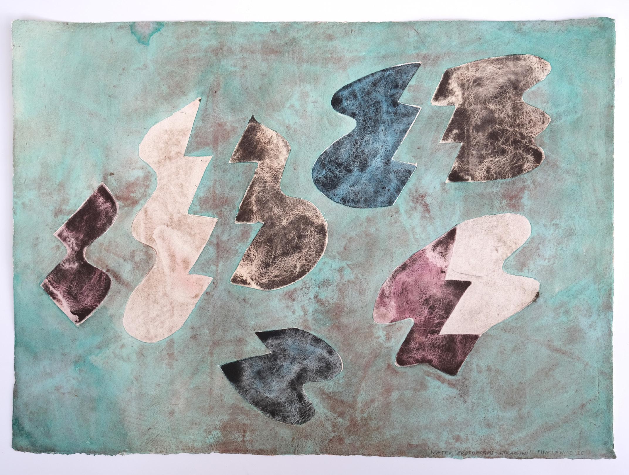 The Estuary series presents the estuary as a primordial and eternal site of creation and transformation. Through abstract explorations of form and their interrelationships, I consider water as a generative force—evoking the emergence of life and the fluidity of becoming. By introducing tensions between organic and geometric forms, I cultivate a dynamic interplay of opposites. Each layer of watercolour is gently washed back or partially erased, allowing textures to emerge through absence as much as presence—revealing a slow process of accumulation, dissolution, and re-formation.