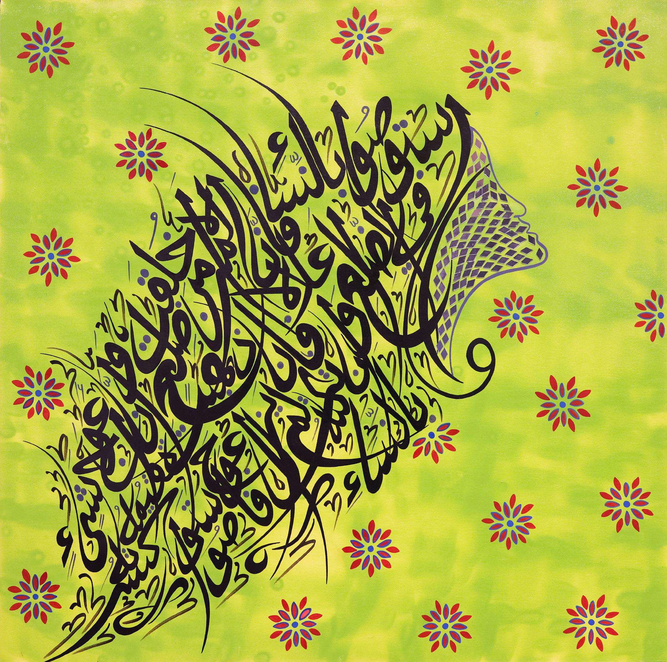 Precious Pearl is a figurative calligraphic artwork that celebrates the spiritual depth, strength, and dignity of women through the flowing elegance of Arabic script. Designed in the shape of a woman’s head and hair, the piece features the words of the Prophet Muhammad (peace be upon him): “Treat women nicely…”, a reminder of kindness and respect.