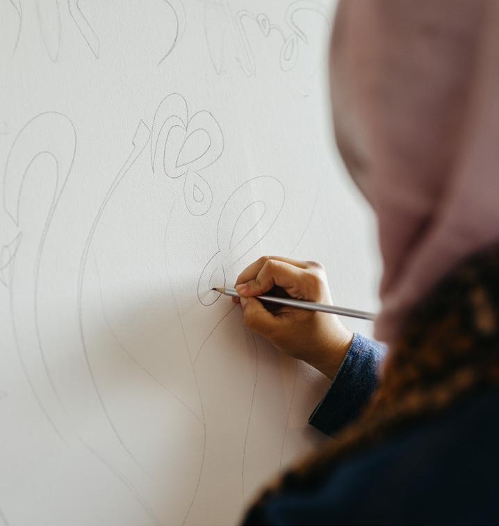 Halima began her exploration into calligraphy during the quietude of the pandemic lockdown, where she found in the ancient art form a powerful way to reconnect with heritage and spirituality. Since then, her calligraphy has evolved into a unique visual language, grounded in sacred tradition yet imbued with her own artistic voice.
