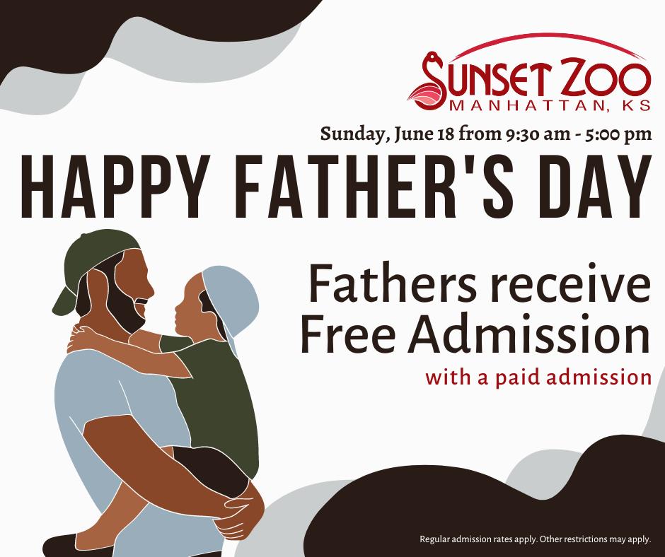 Come celebrate dad with a day out at the Zoo! All dads will be admitted free to the Zoo with another paid admission. We will also have a special surprise for dads while they visit. Come enjoy the day with dad and all the animals!