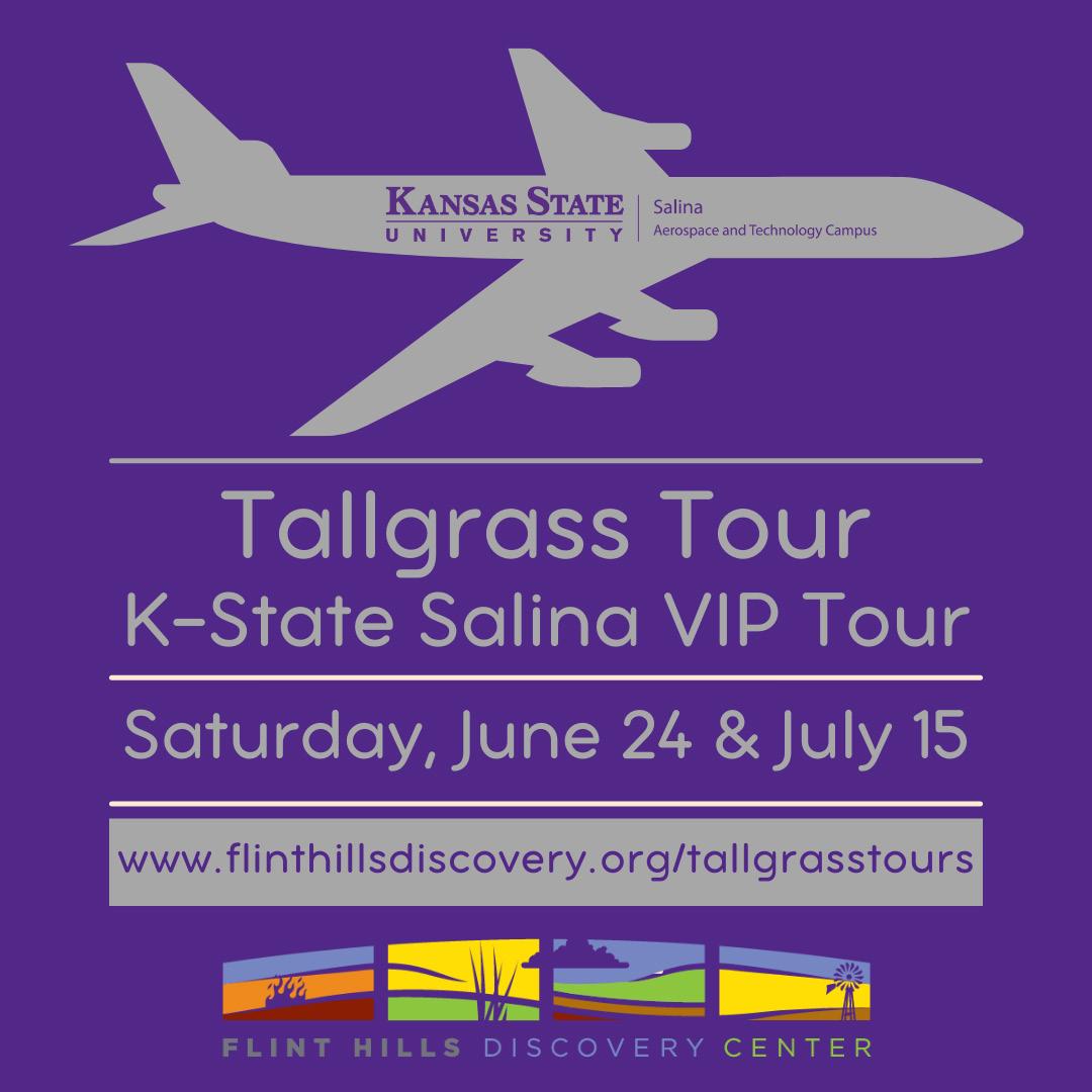 We’re off to Salina for an exclusive behind-the-scenes tour of the K-State Aerospace and Technology Campus! First, visit the K-State Salina Aerospace and Technology Campus for a day of VIP treatment with hands-on experiences and behind the scenes tours! Explore an exclusive view of flight line operations and the aviation maintenance hangar. Before heading home, we will stop at a local favorite to eat lunch! Round trip travel and tour fees are provided. Participants are responsible for lunch. The tour leaves the Flint Hills Discovery Center at 8:30 AM and returns no later than 4 PM Ages 8+ only. Preregistration is required by Friday, June 23/Friday, July 14, respectively at 5 PM.