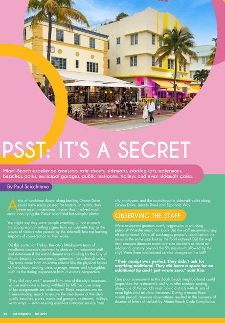 Revista MB es producida cada tres meses por la Oficina de Mercadeo y Comunicaciones. La publicación de un anuncio no implica respaldo de ningún producto, servicio u opinión por parte de la Ciudad de Miami Beach, sus empleados o funcionarios.